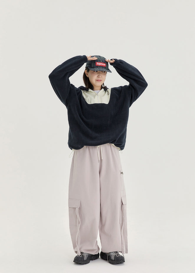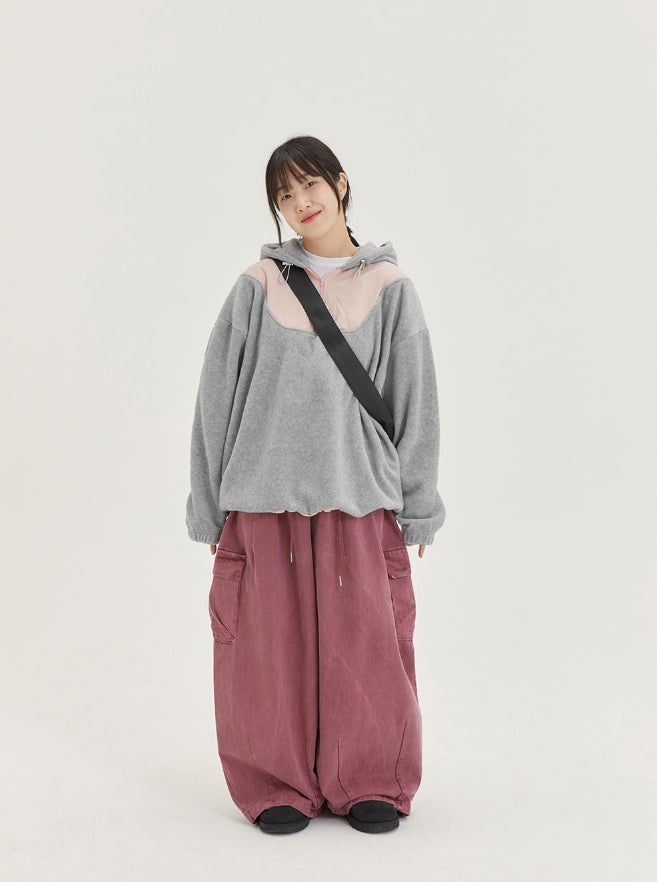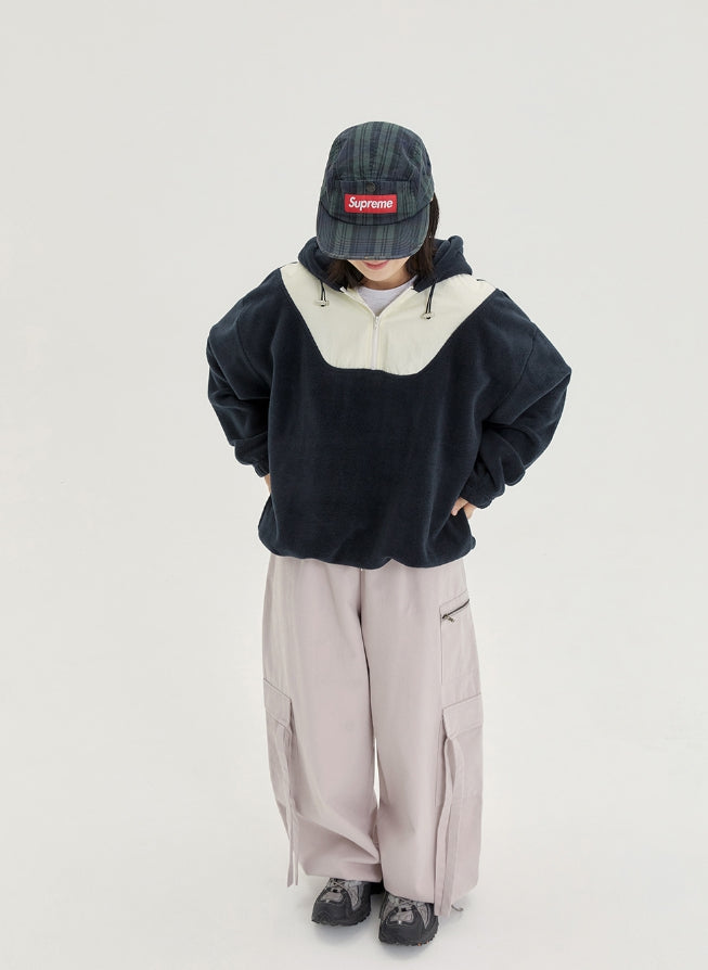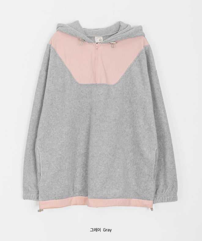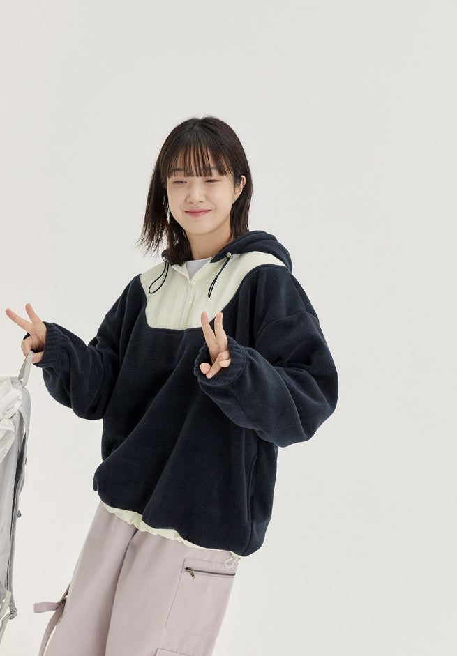 [BAONHAUS] Tomomb half zip-up color matching fleece hoodie
