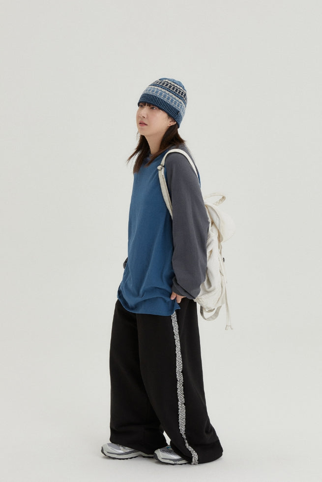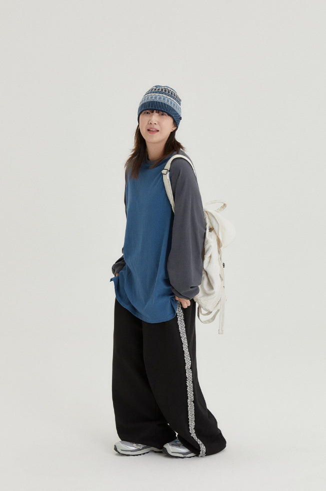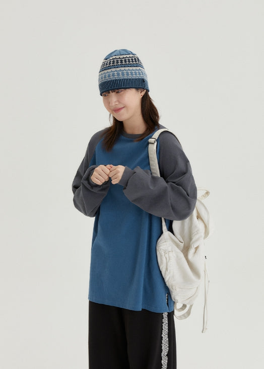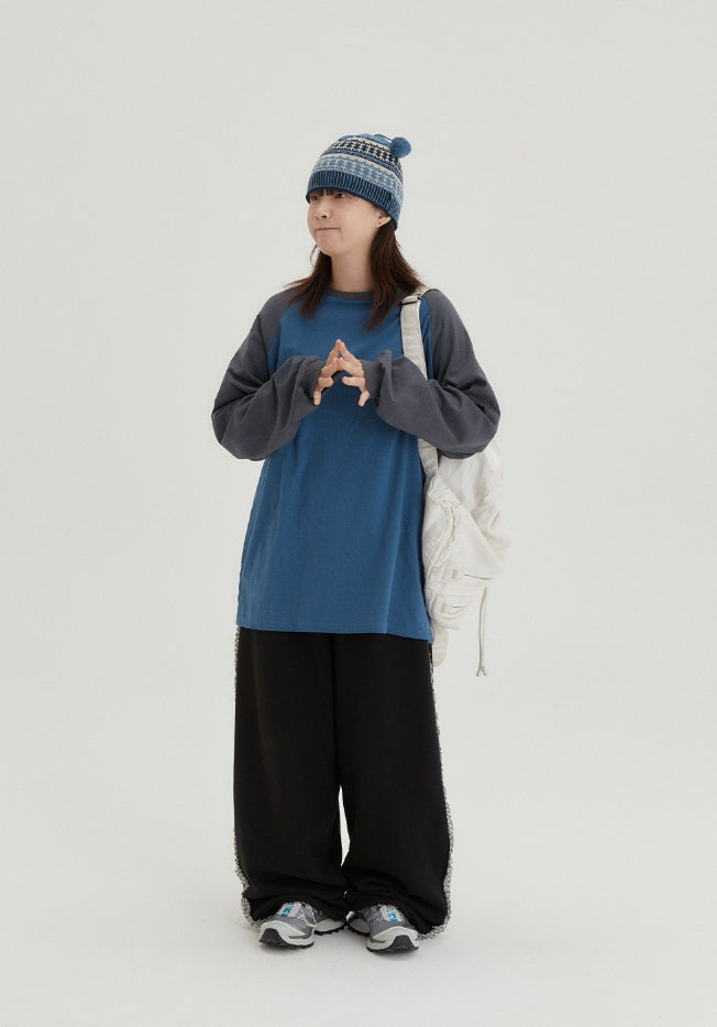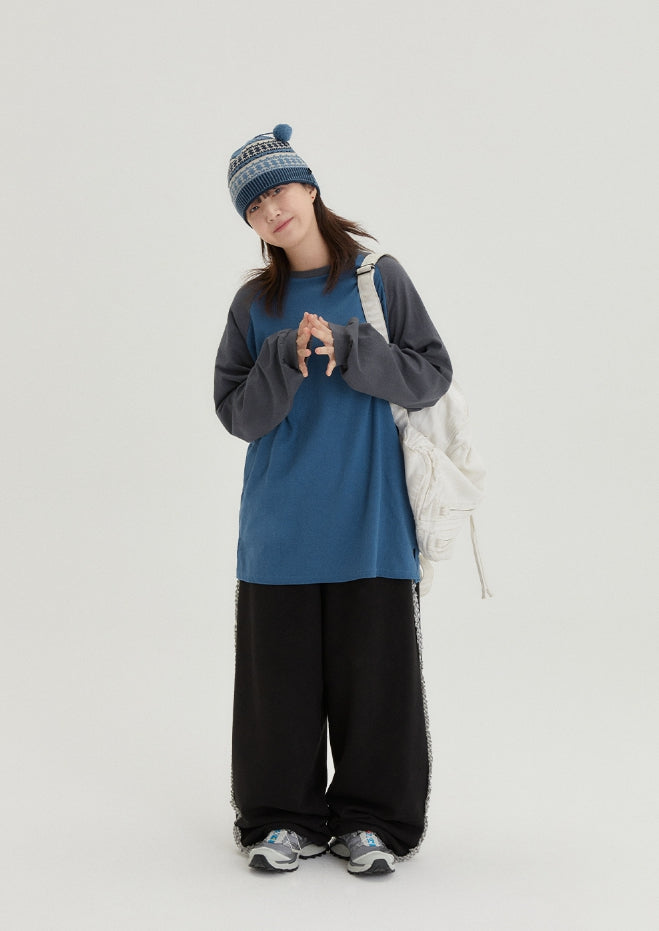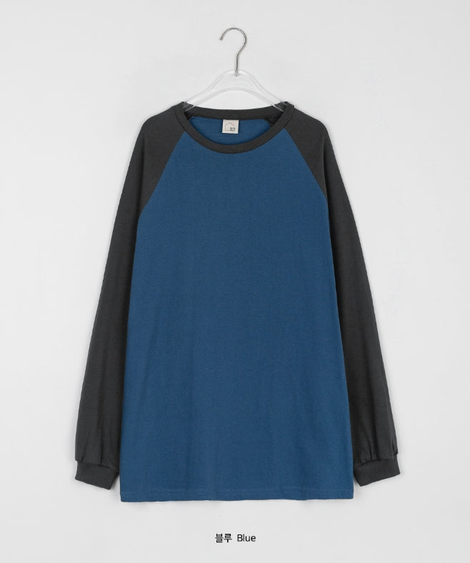 [BAONHAUS] Wake color matching raglan round long sleeve tee