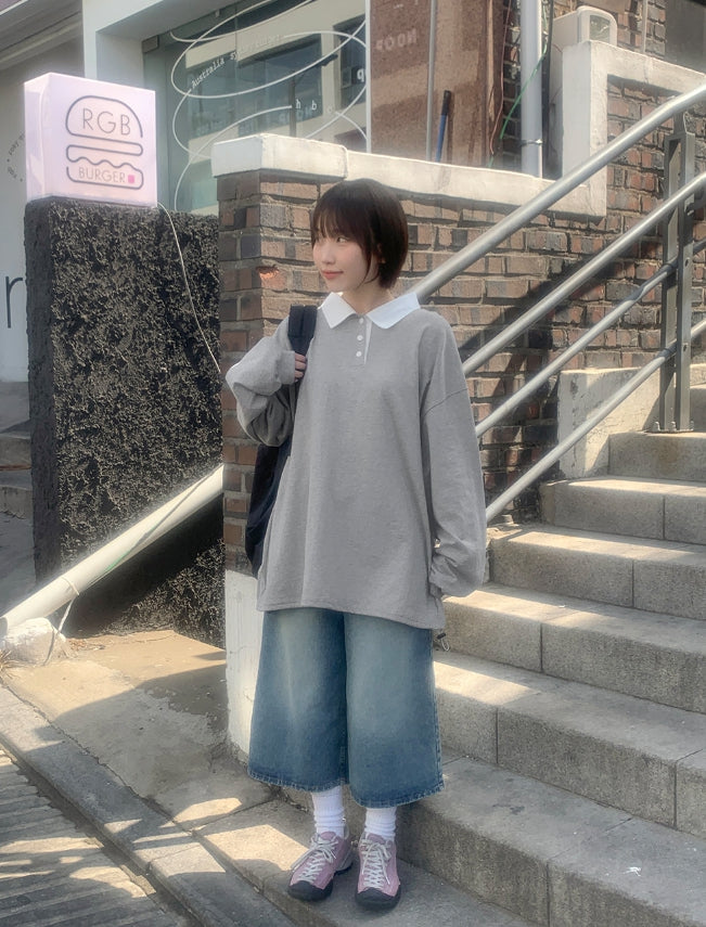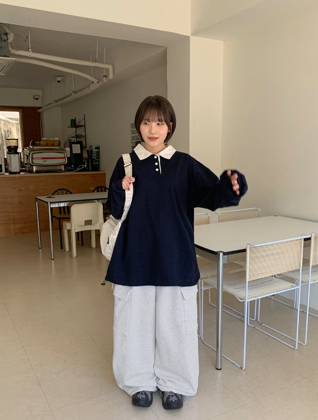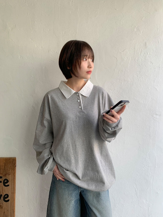 [BAONHAUS] Minets Over Color Matching Collar Rugby Tee