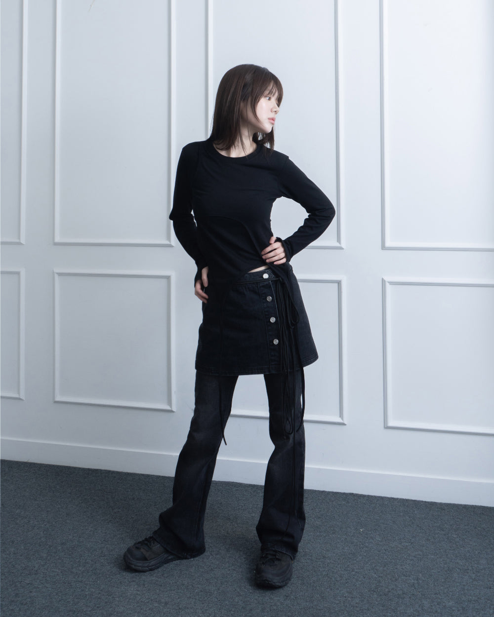 デニムボタンラップスカート