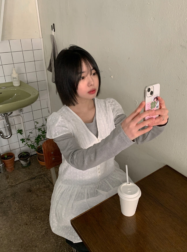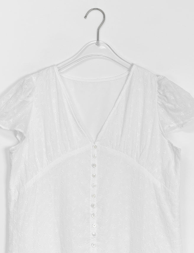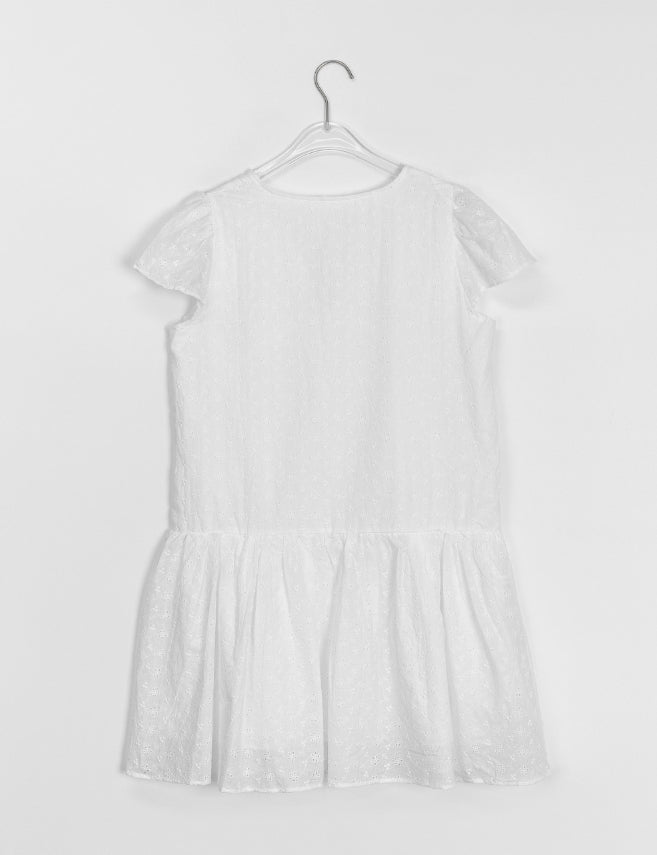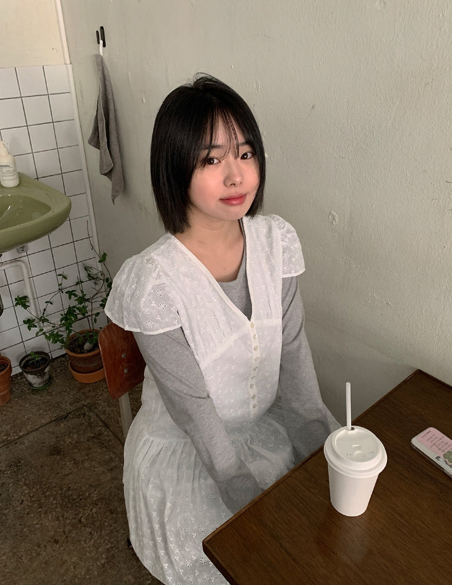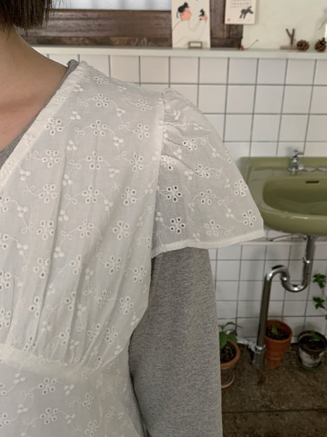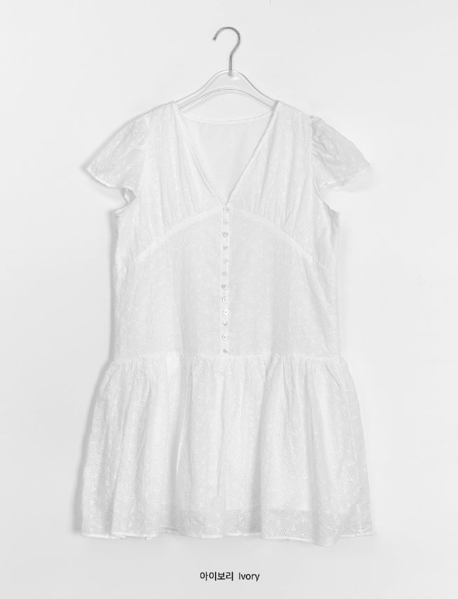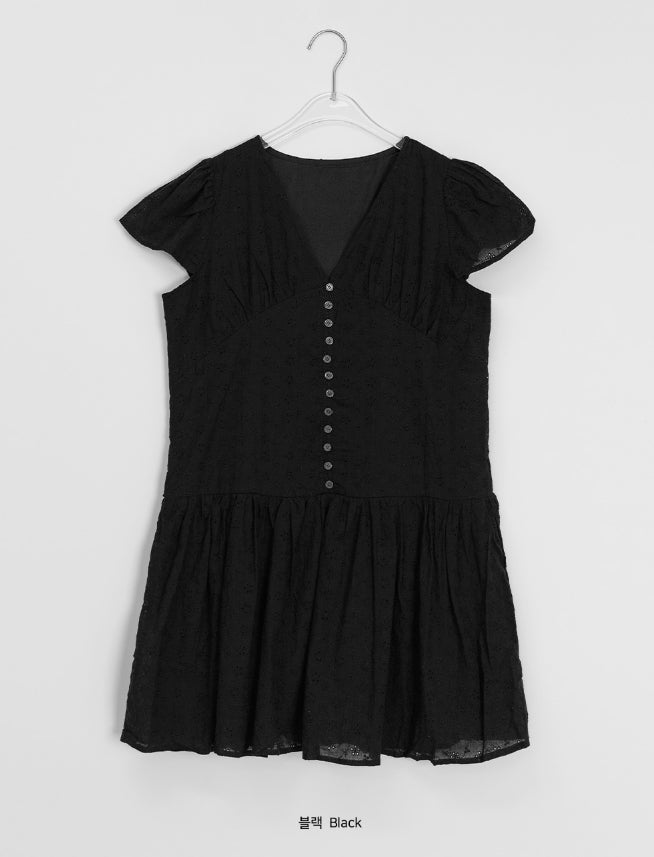 ドベニーフラワーパンチングシャーリングブイネック半袖ワンピース