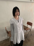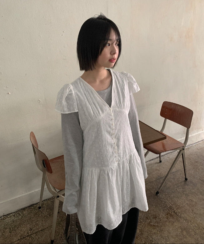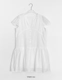 Dobenny Flower Punching Shirring V-Neck Short Sleeve One Piece
