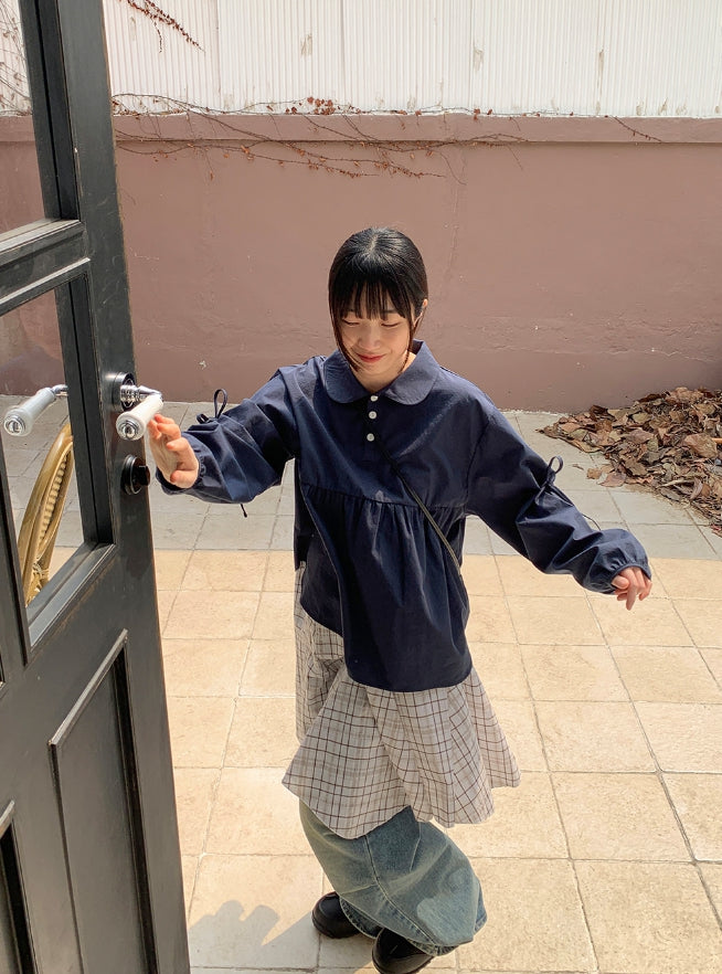 ドクイチェックアンバランスバンディングミディ丈スカート