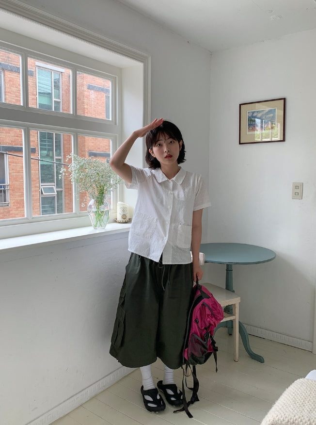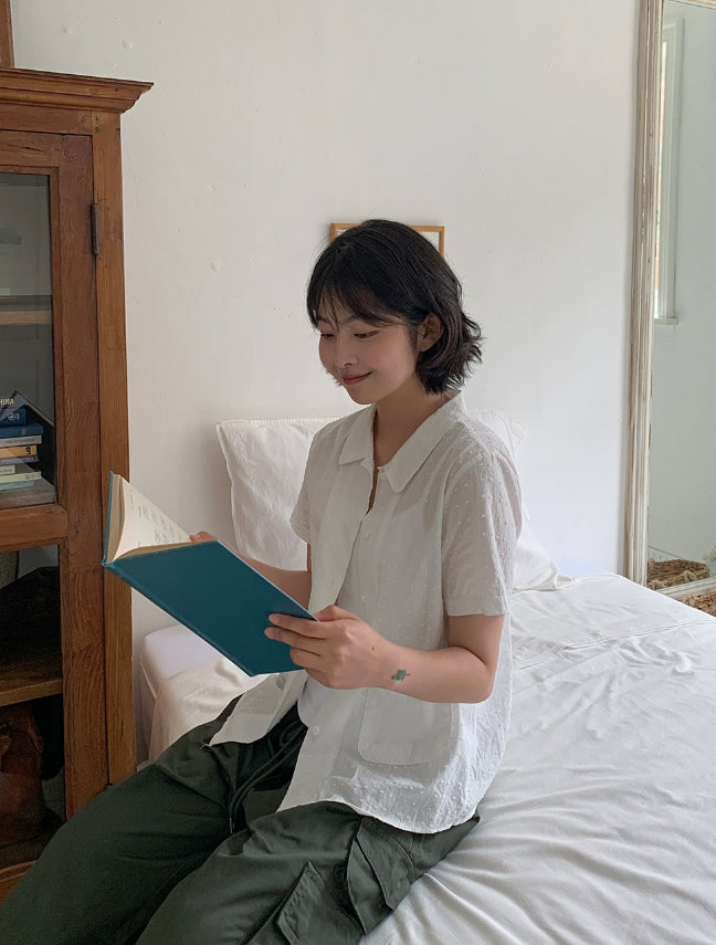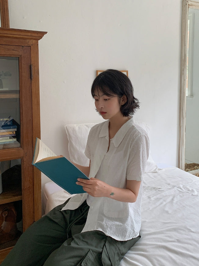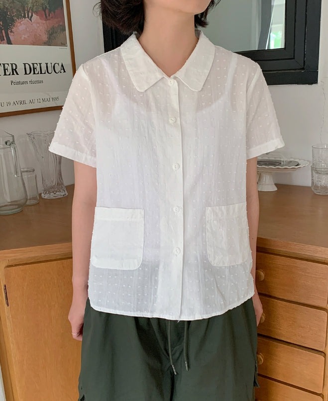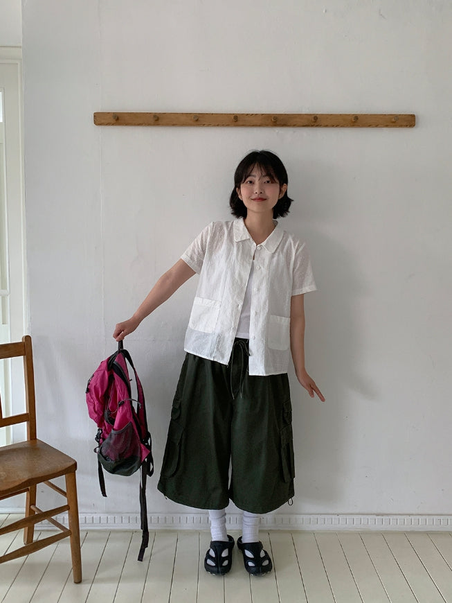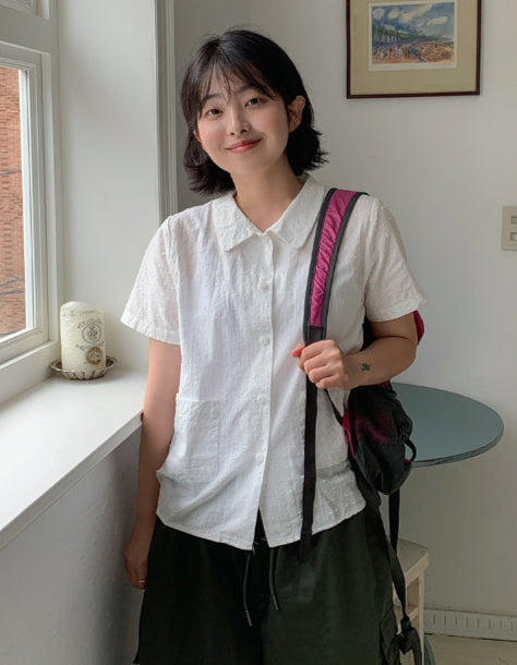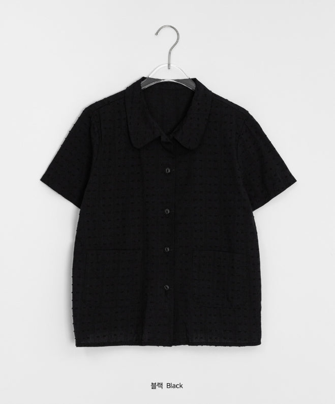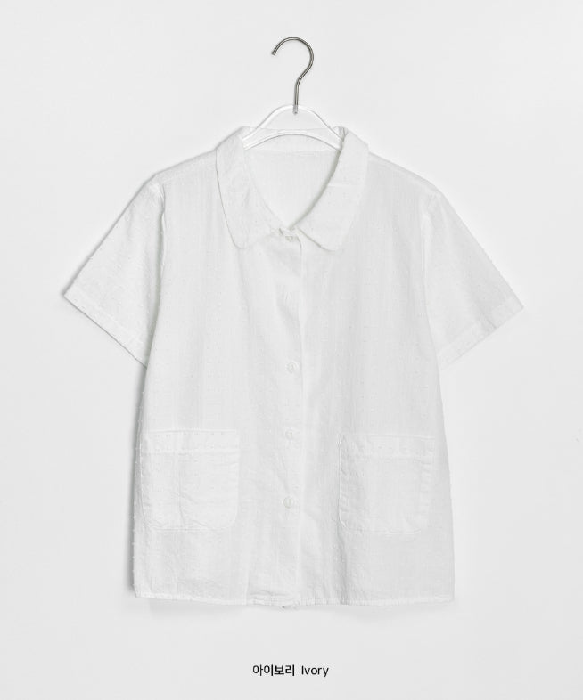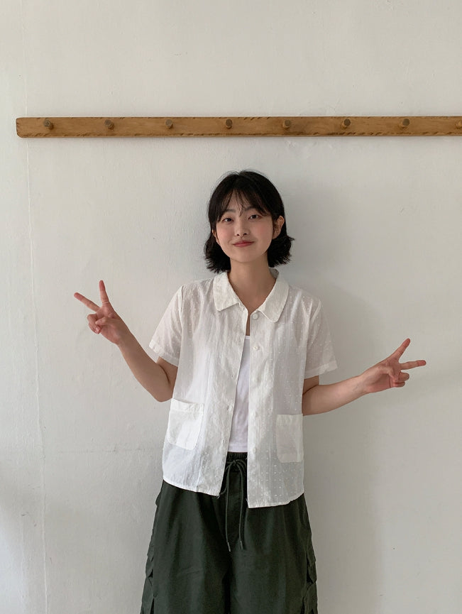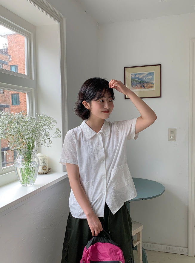 ドゥストシアサッカー刺繍ポケット半袖シャツ