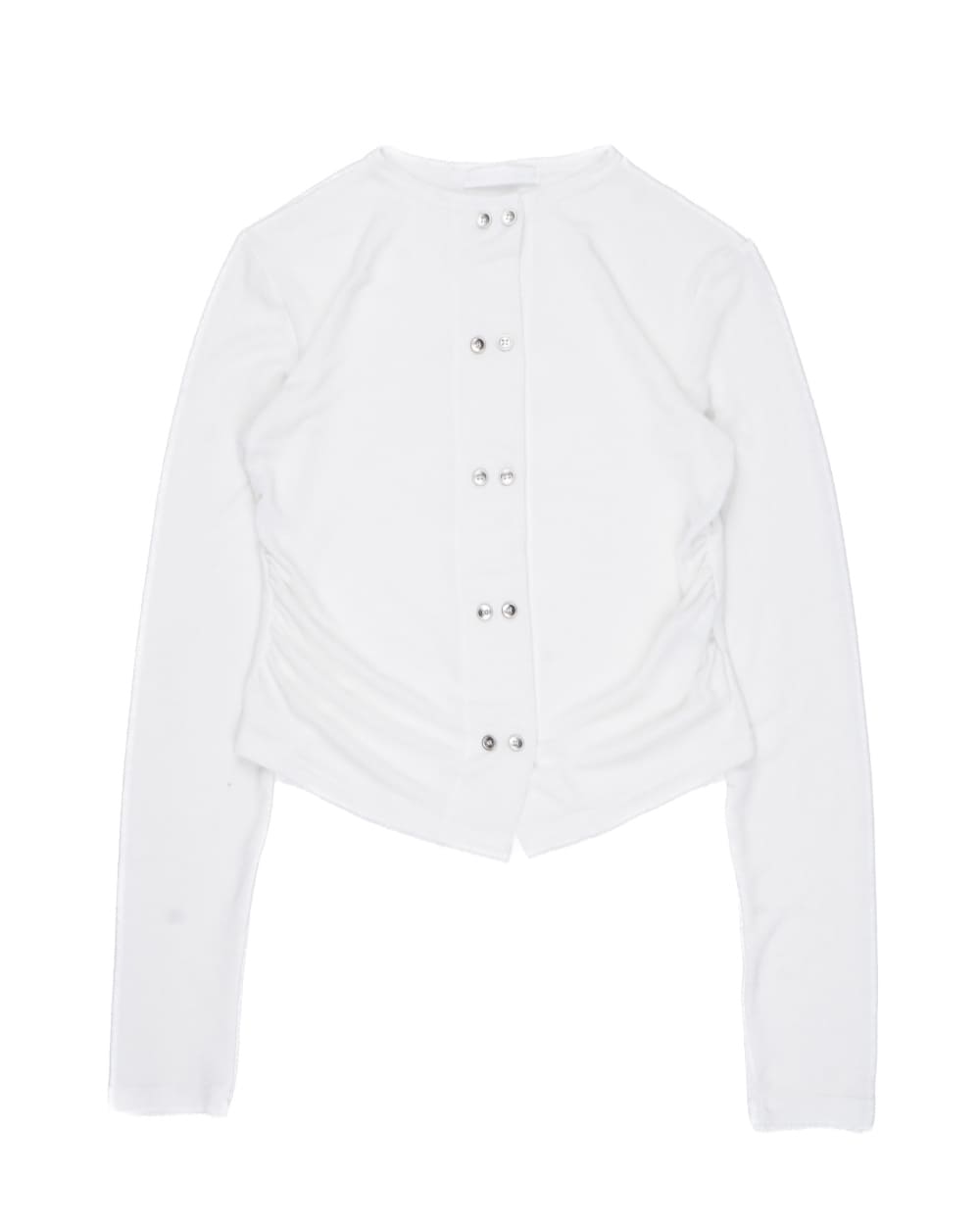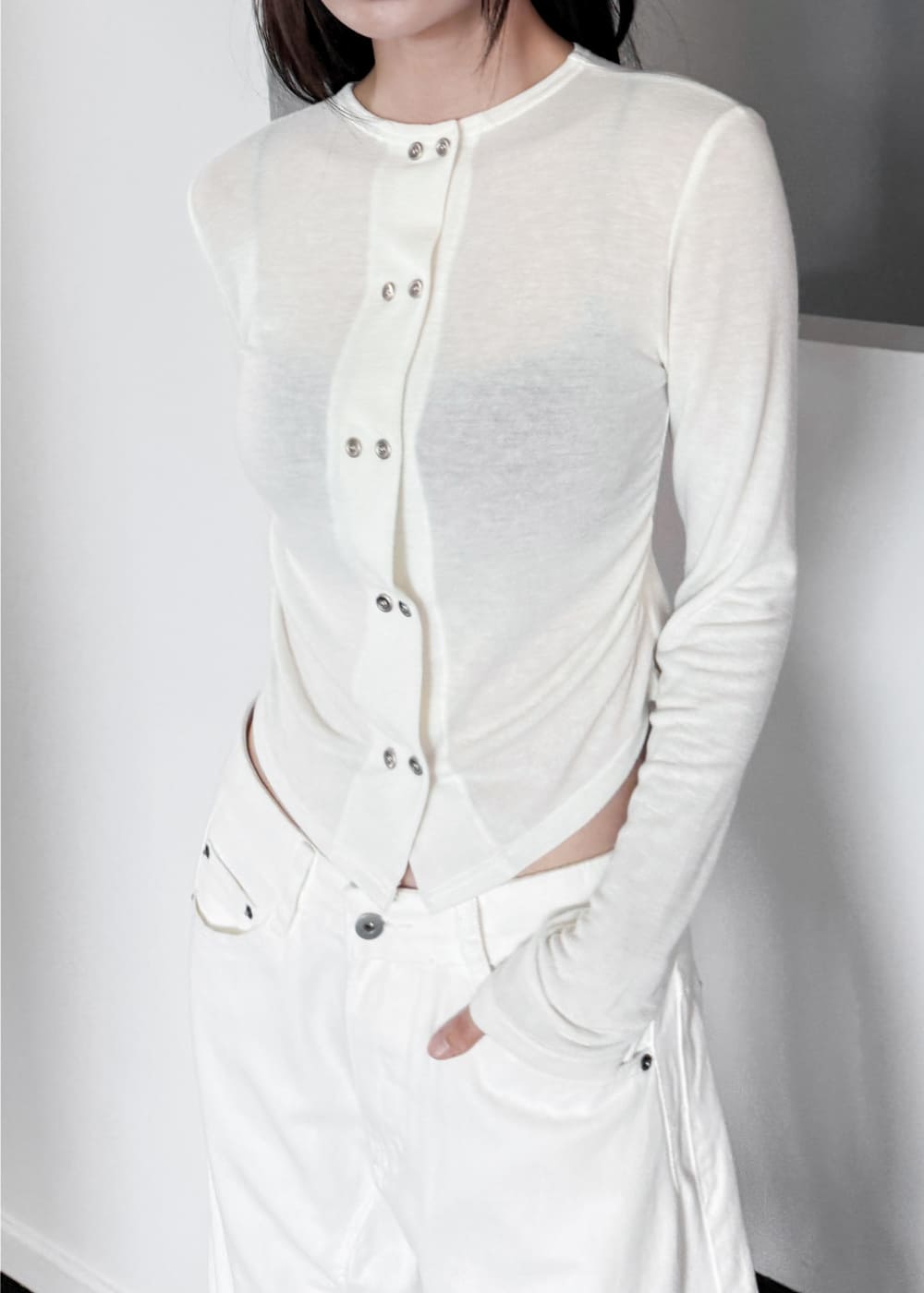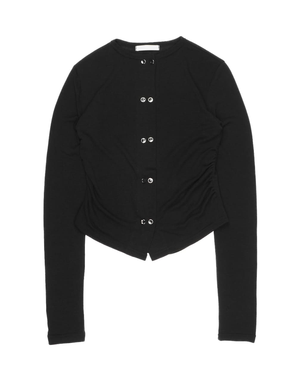 DOUBLE BUTTON SHIRRING CARDIGAN