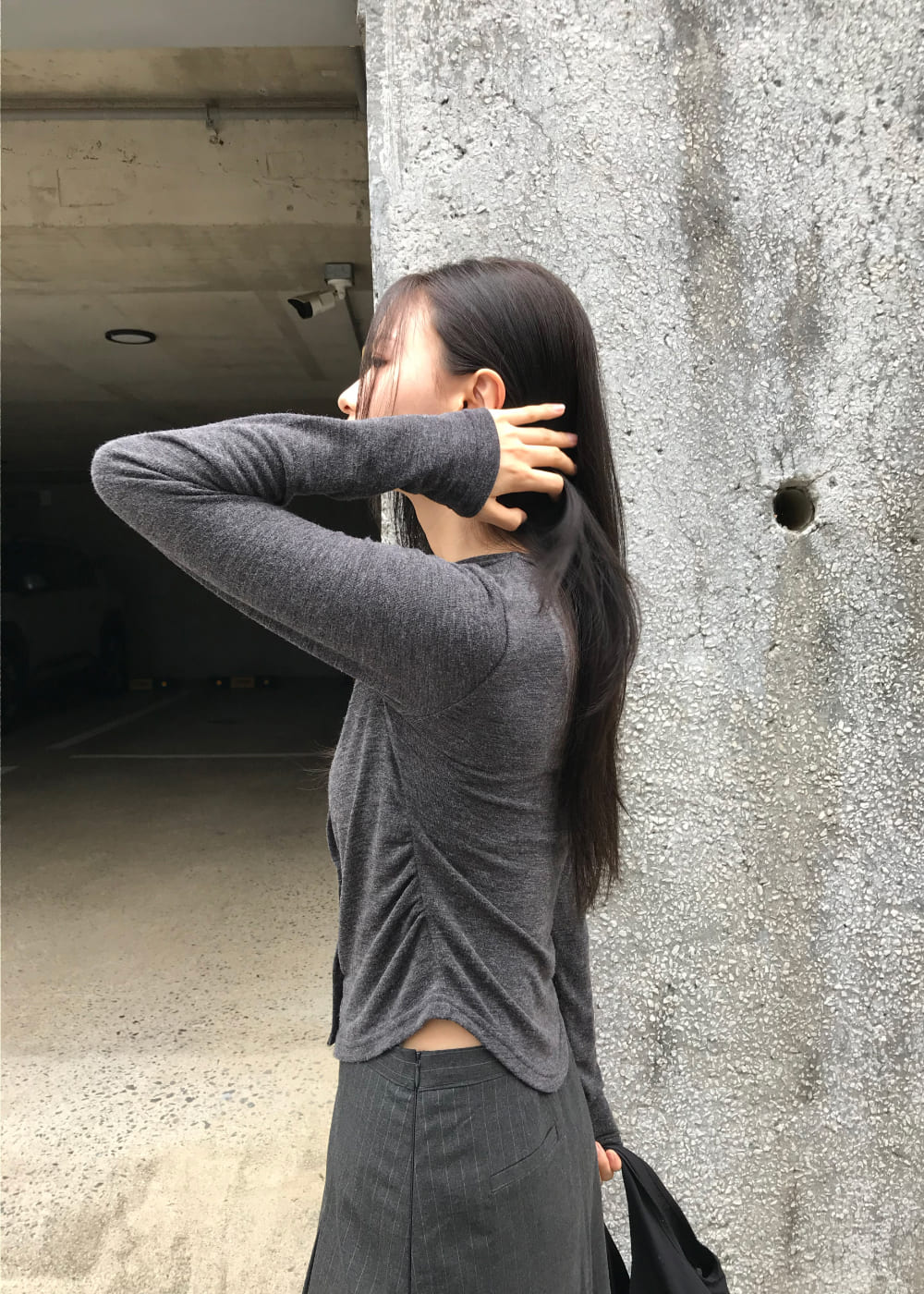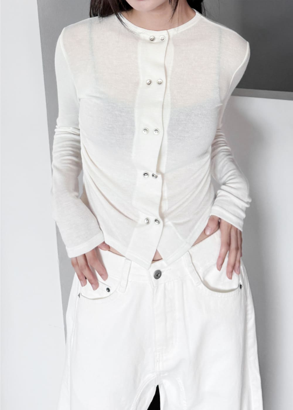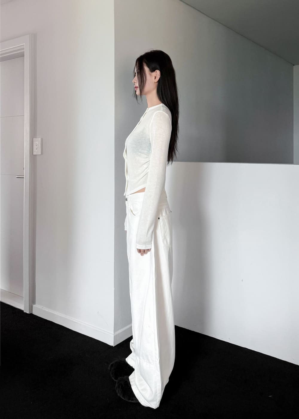 DOUBLE BUTTON SHIRRING CARDIGAN