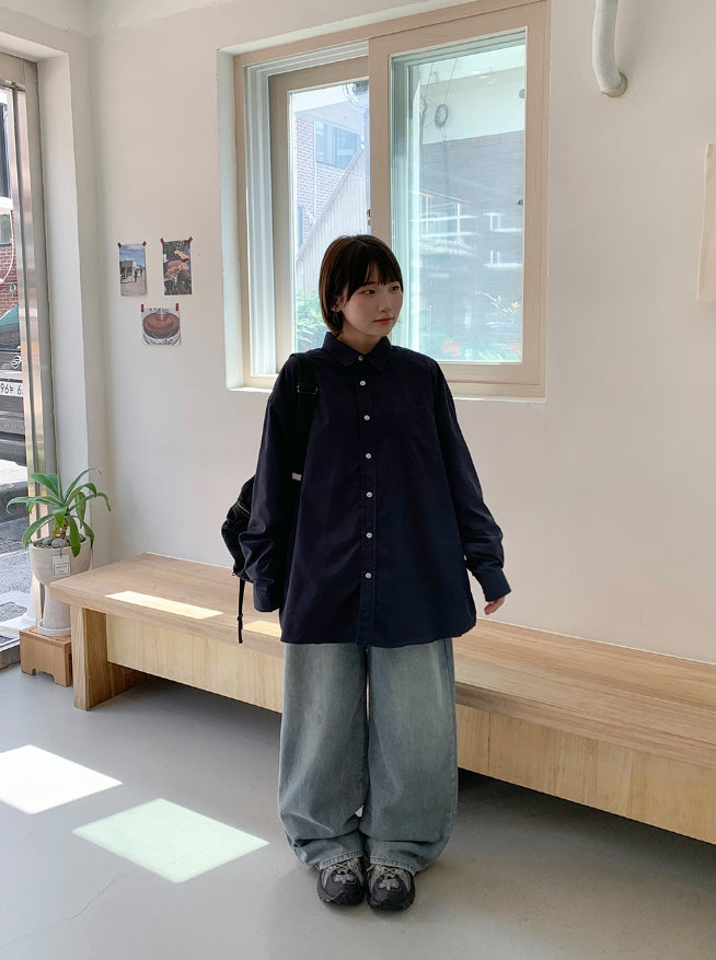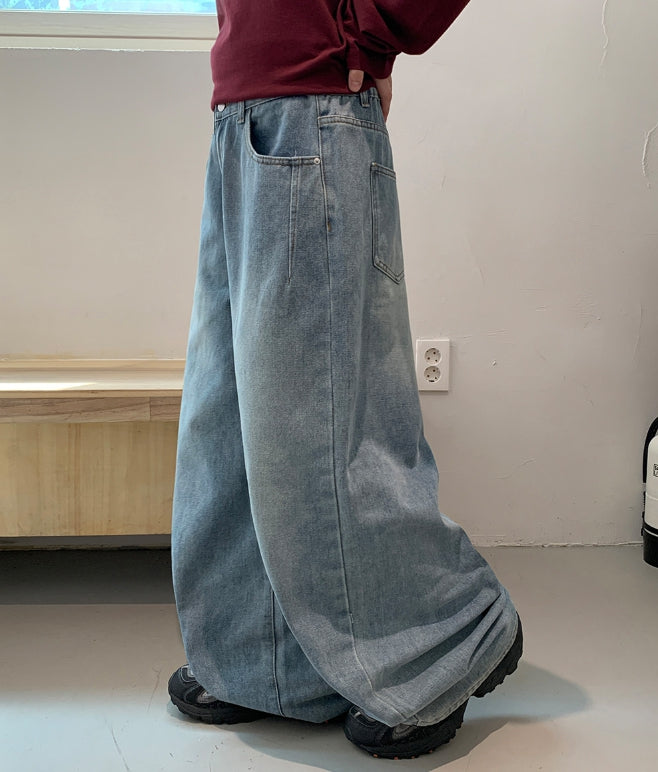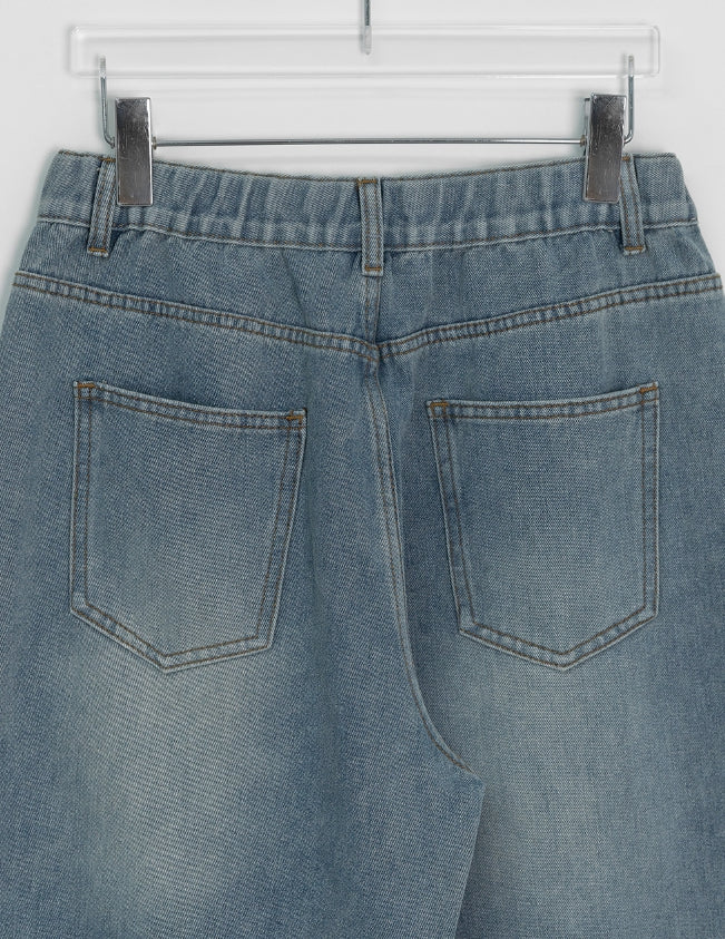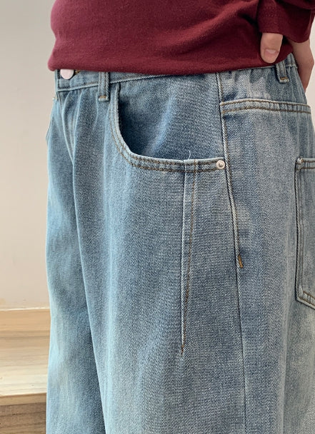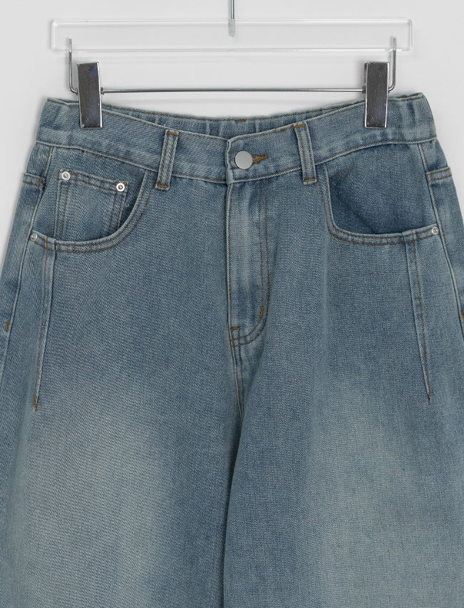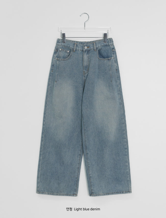 Dronghin Dart Washing Denim Wide Pants
