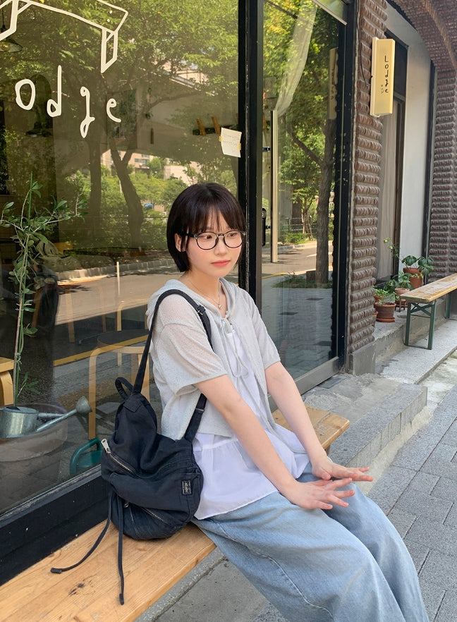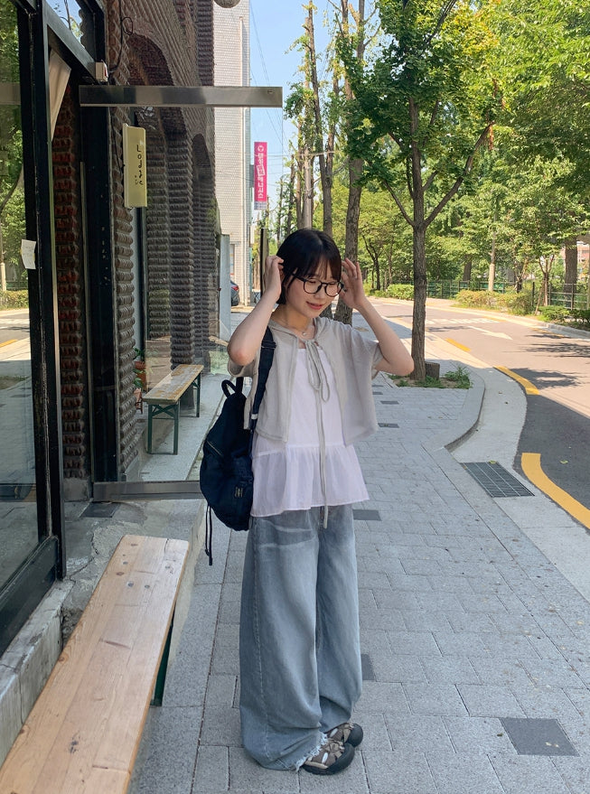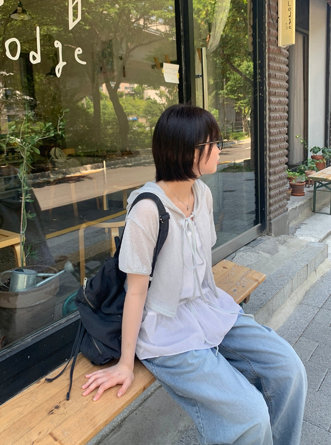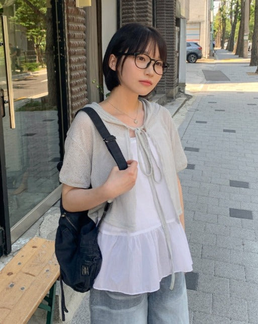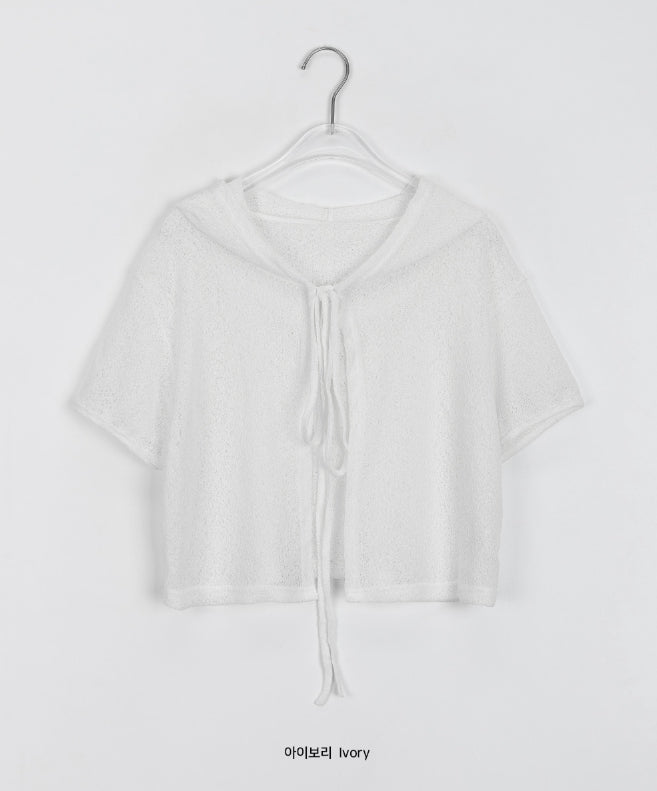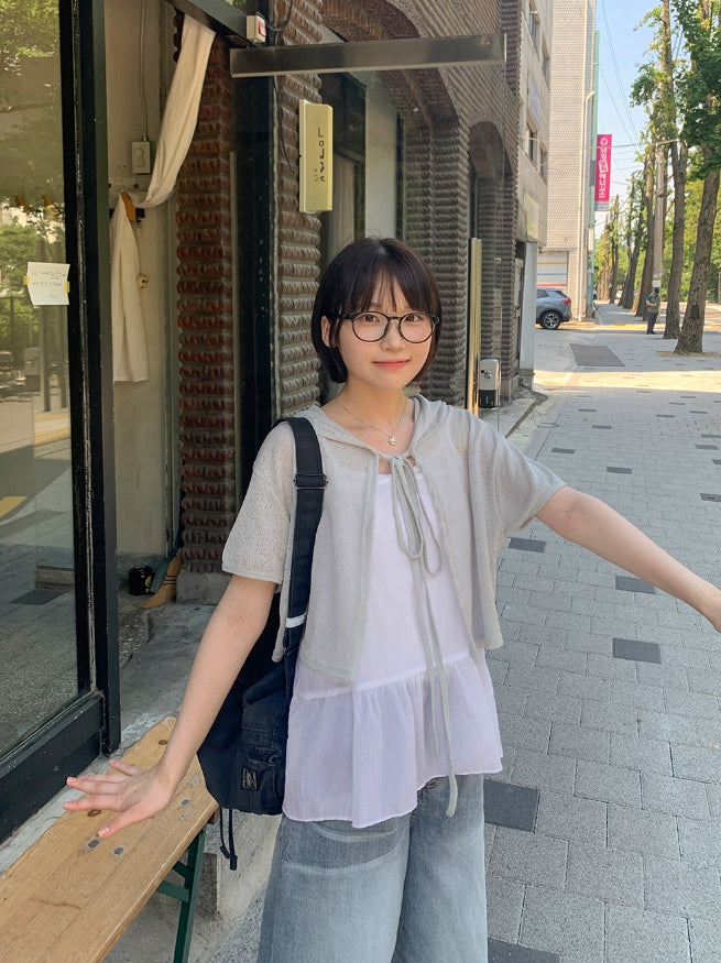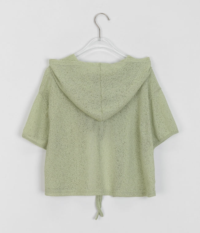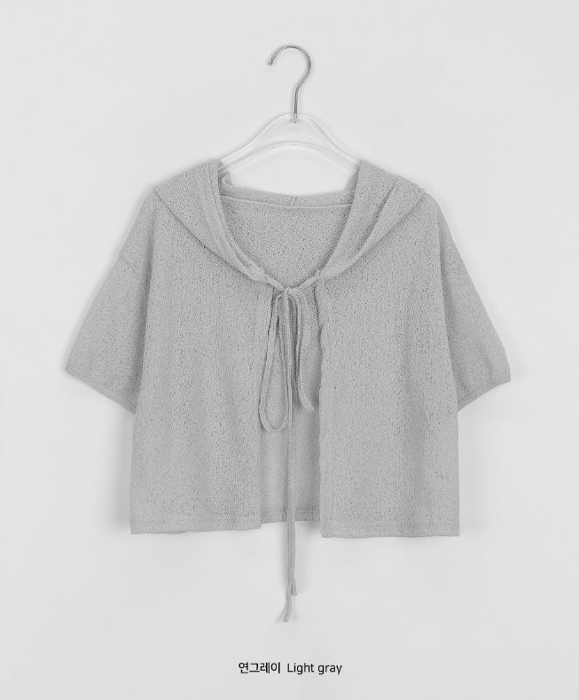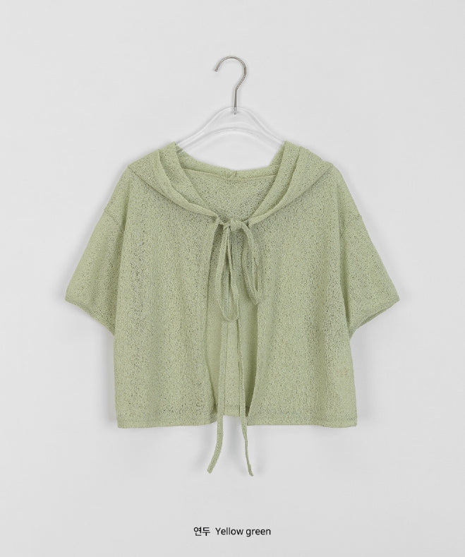 Duco Summer Crop Ribbon Hood Short Sleeve Cardigan