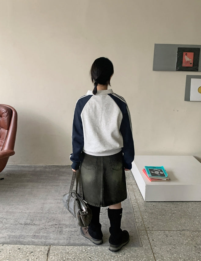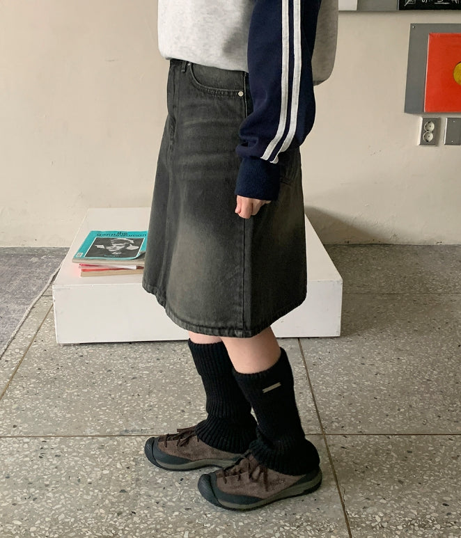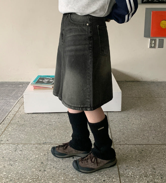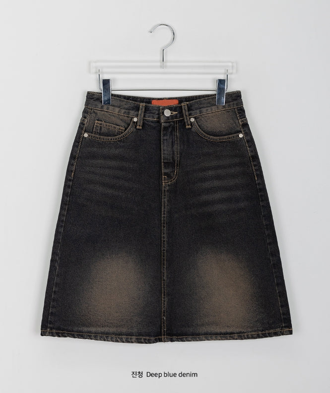 ダンピーウォッシングデニムミディスカート