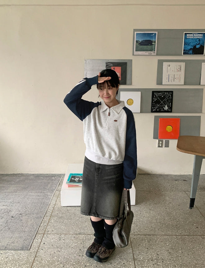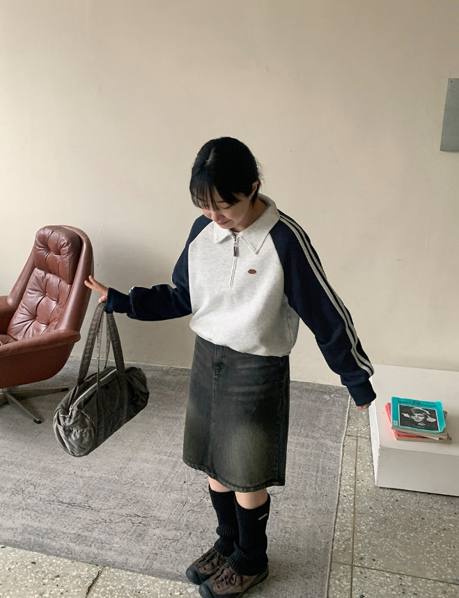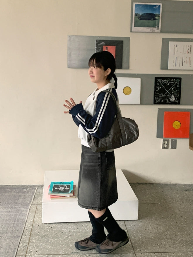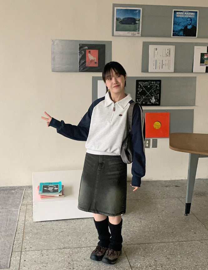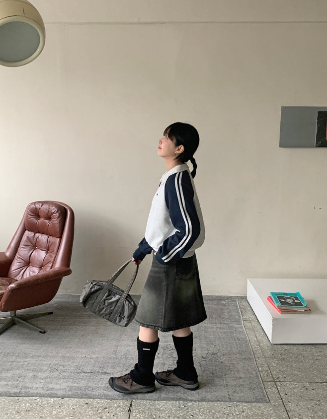 Dumpy Washed Denim Midi Skirt