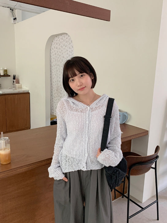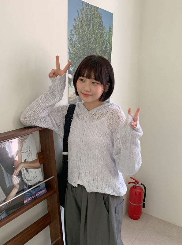 Elle Summer Boucle Knit Hood Cardigan