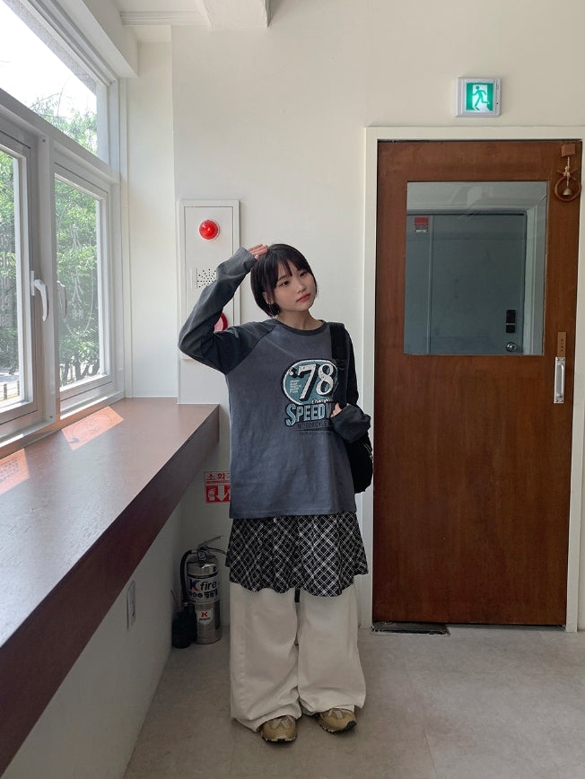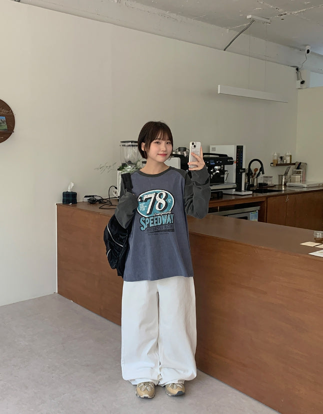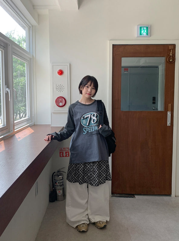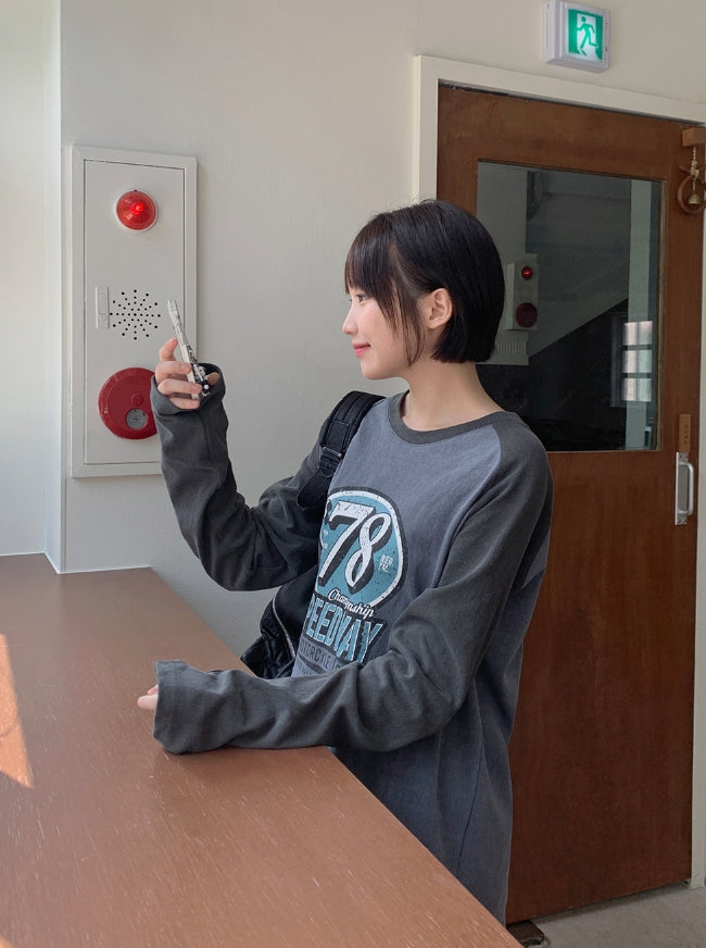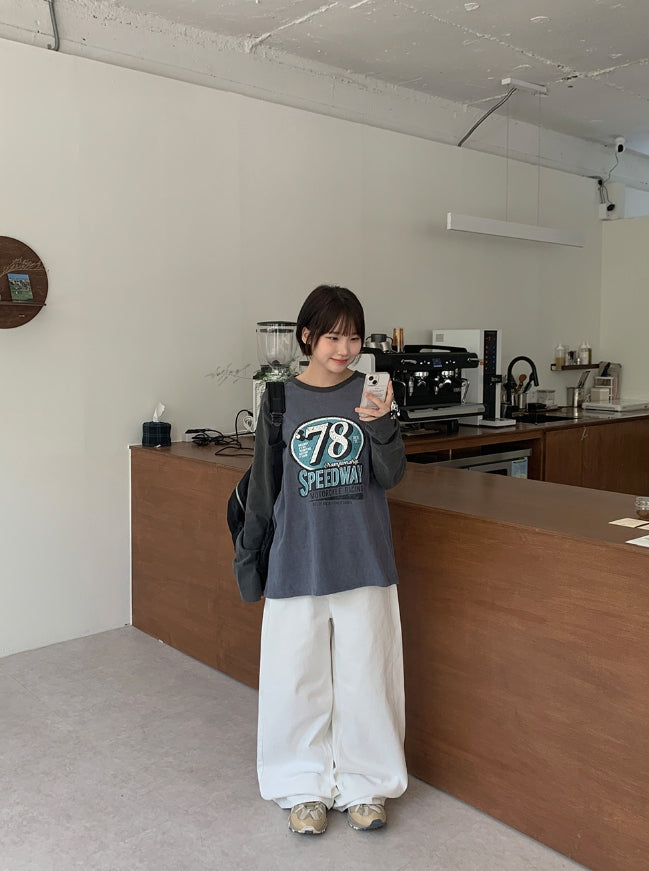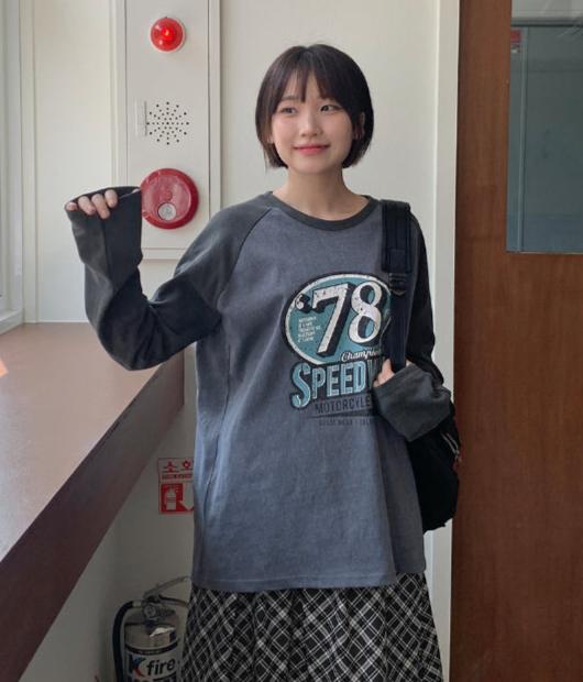 エルキピグメントカラープリンティング長袖Tシャツ