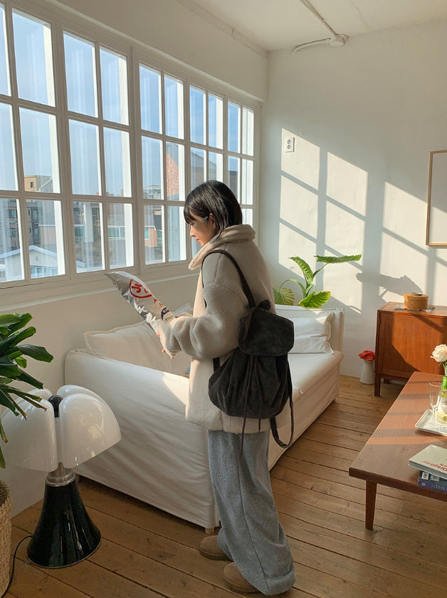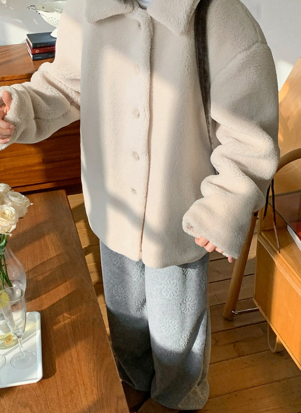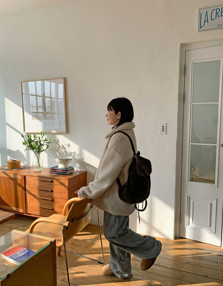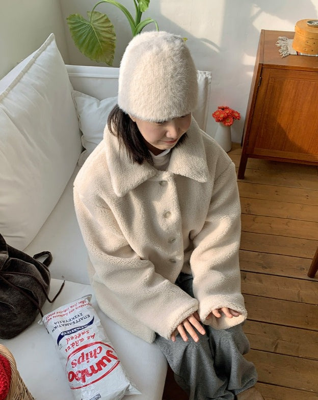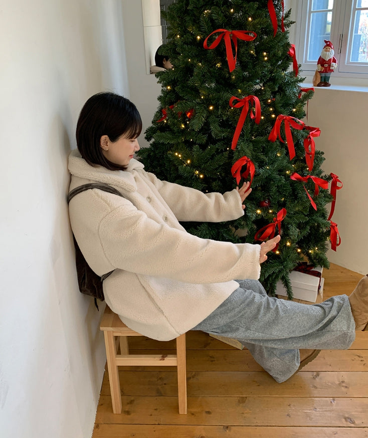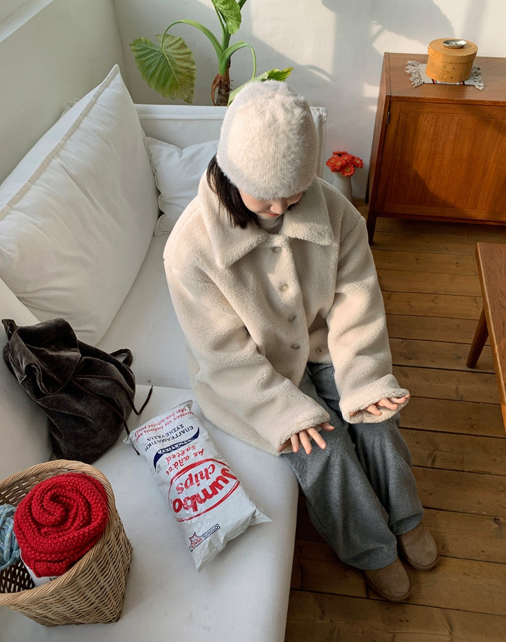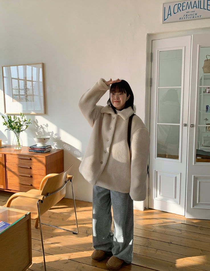 エング襟付きオーバームートンジャケット