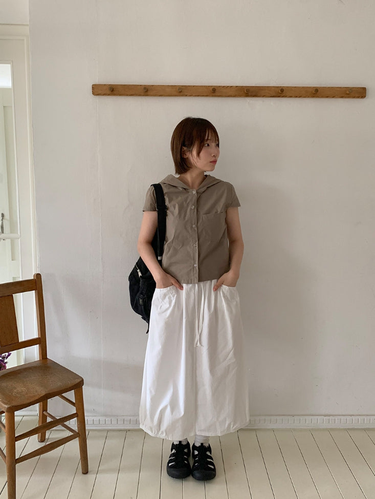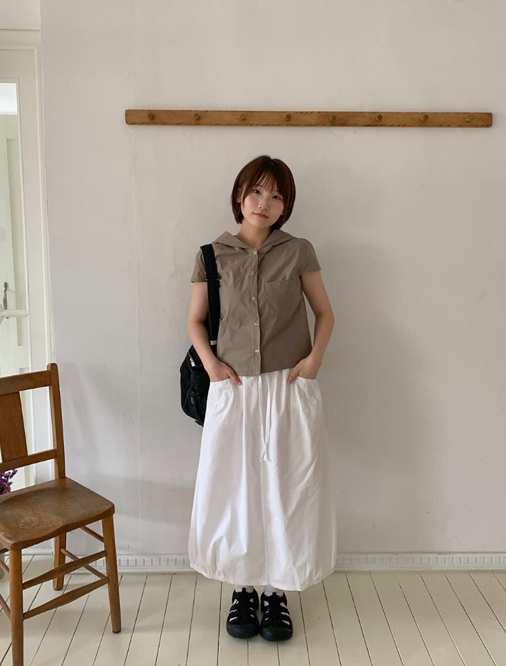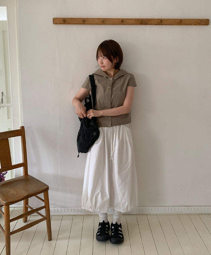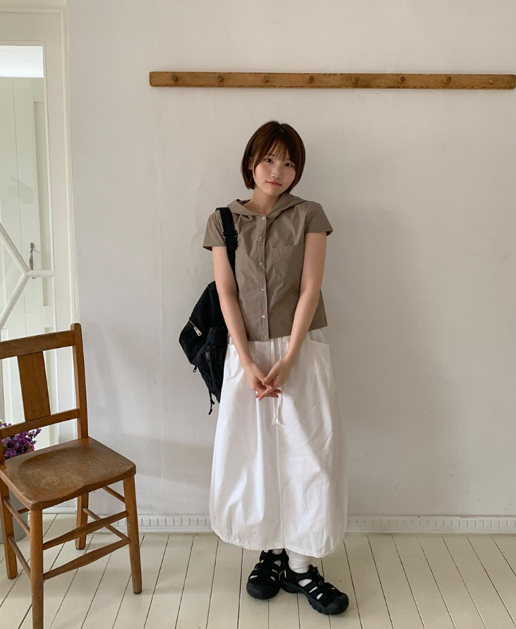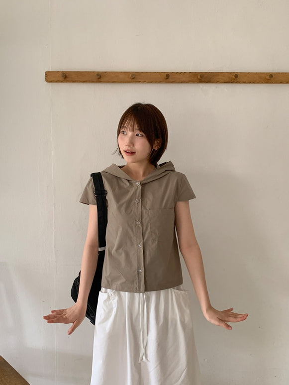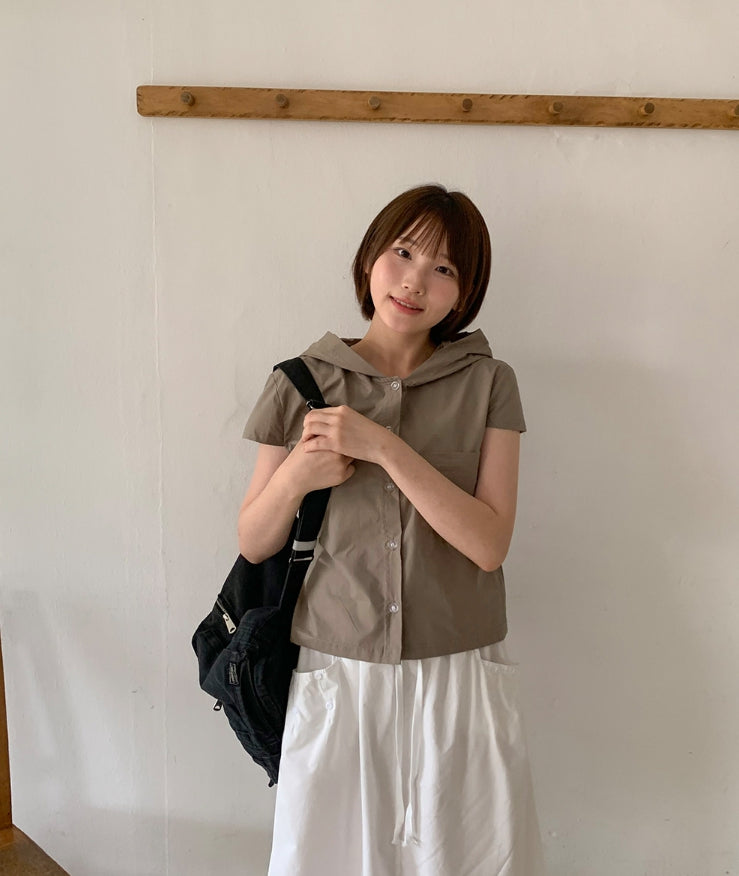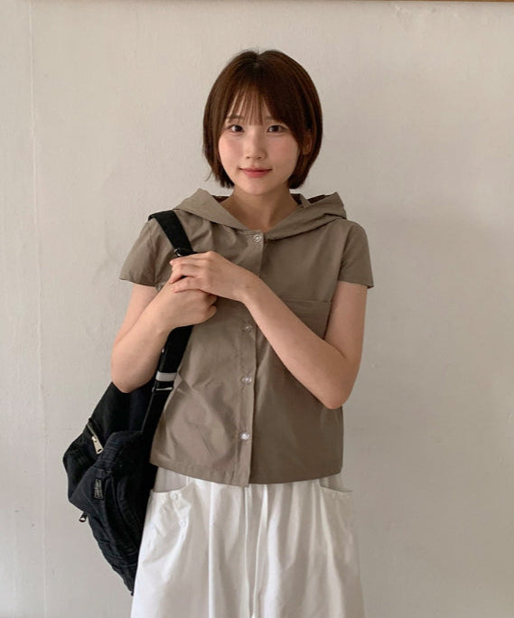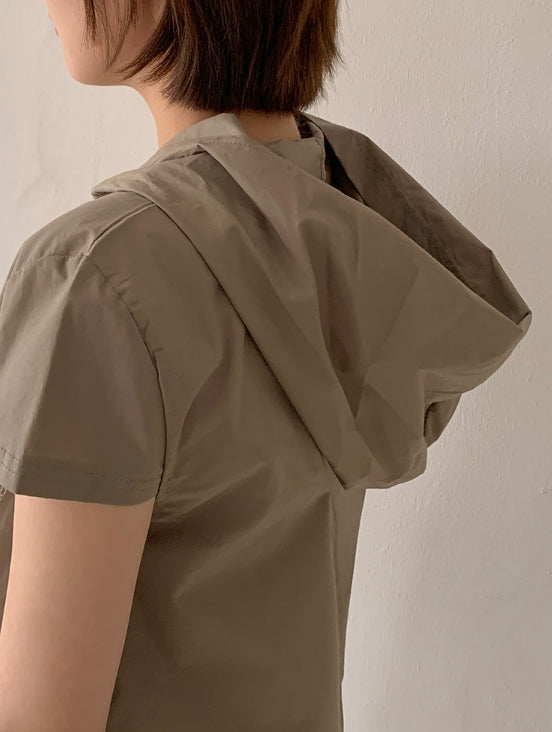 Ennew Crop Hood Short Sleeve Shirt