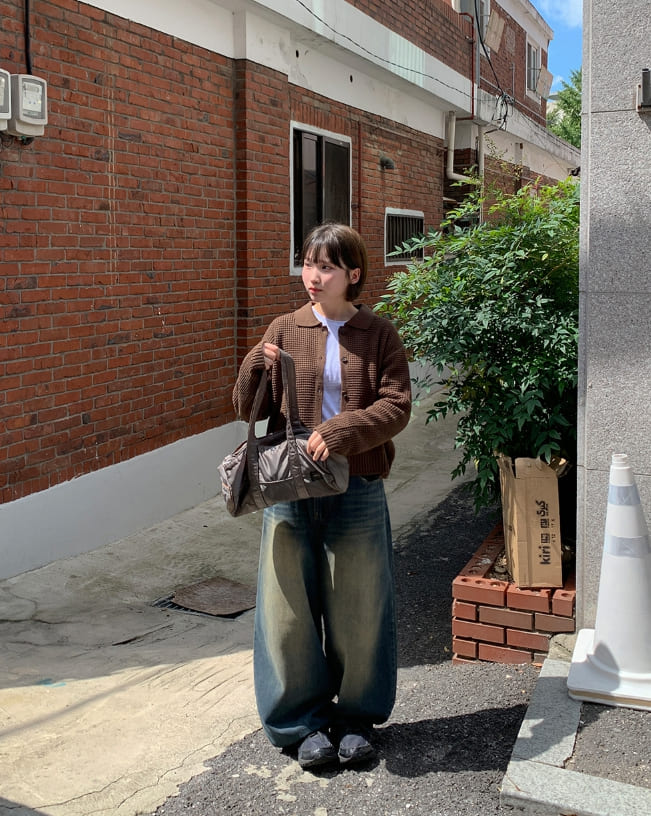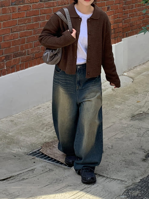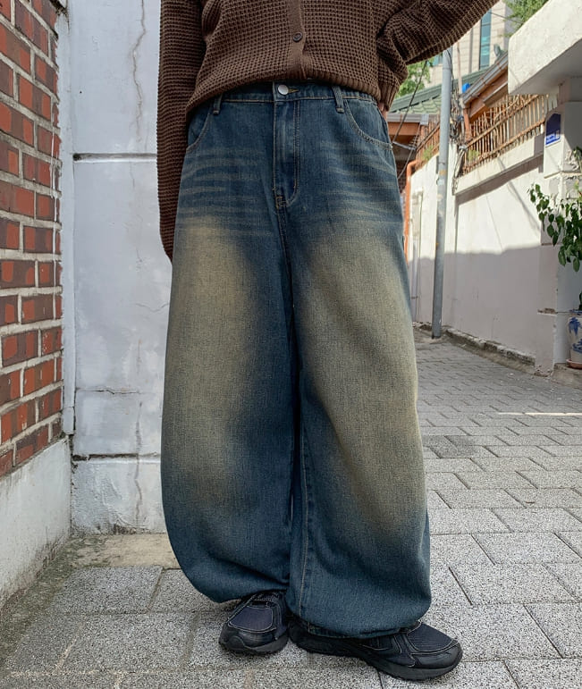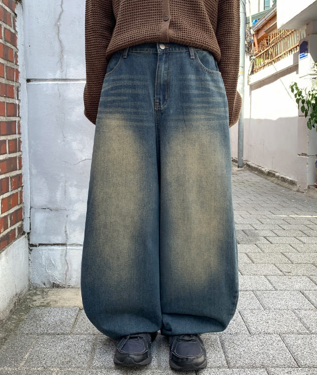 パベンスウォッシュ加工デニムバルーンワイドパンツ