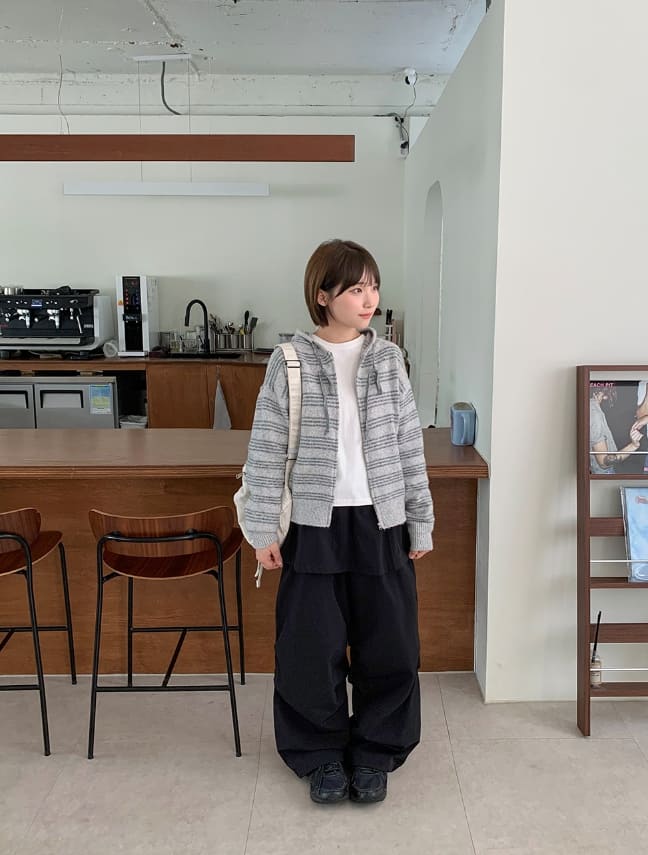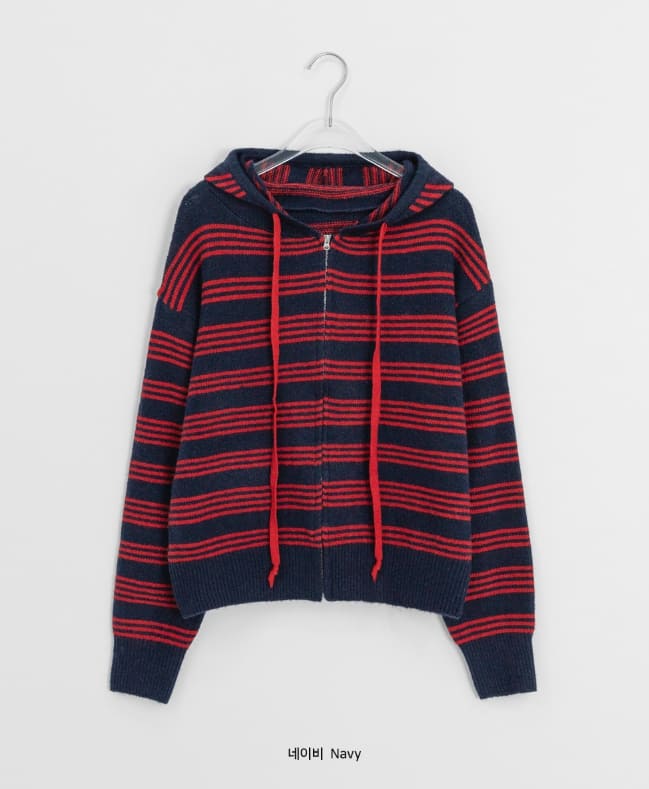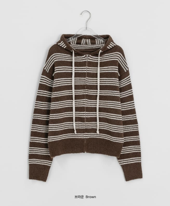 Feltenden Stripe Knit Hood Zip-Up Cardigan