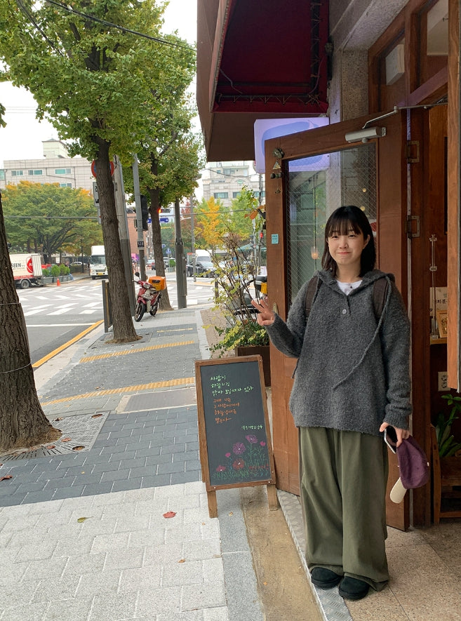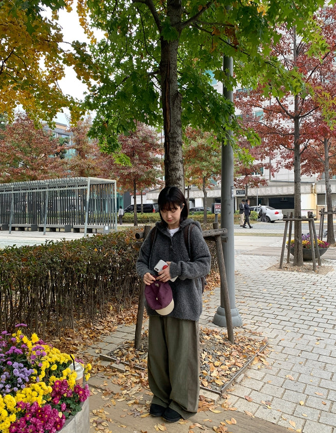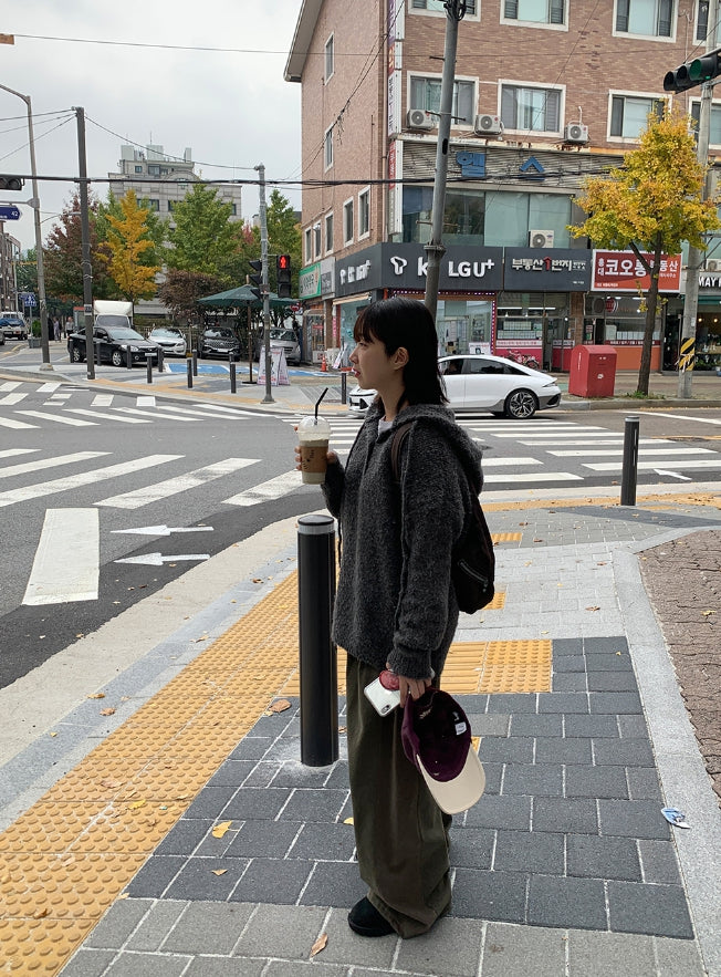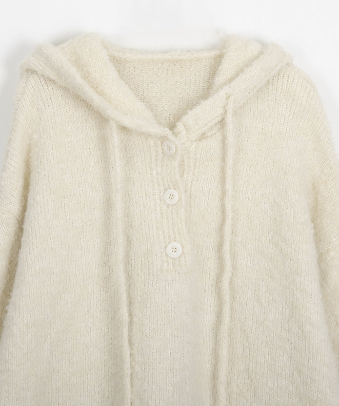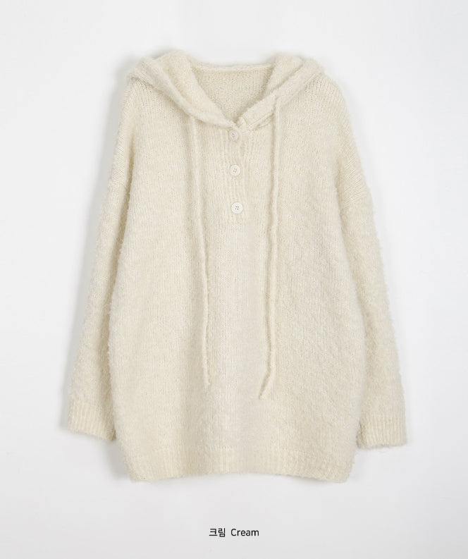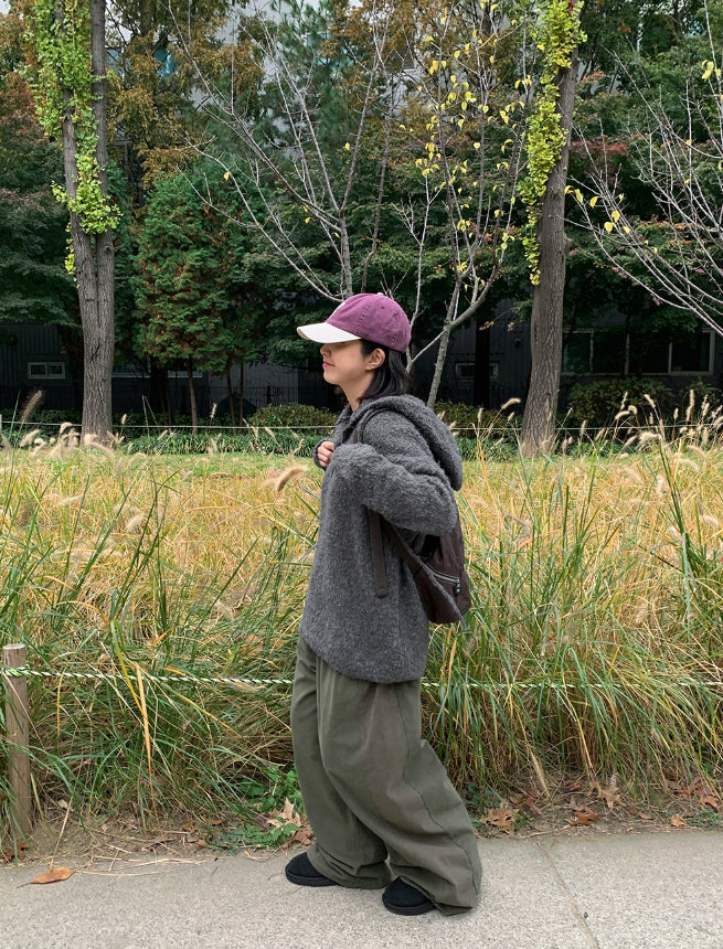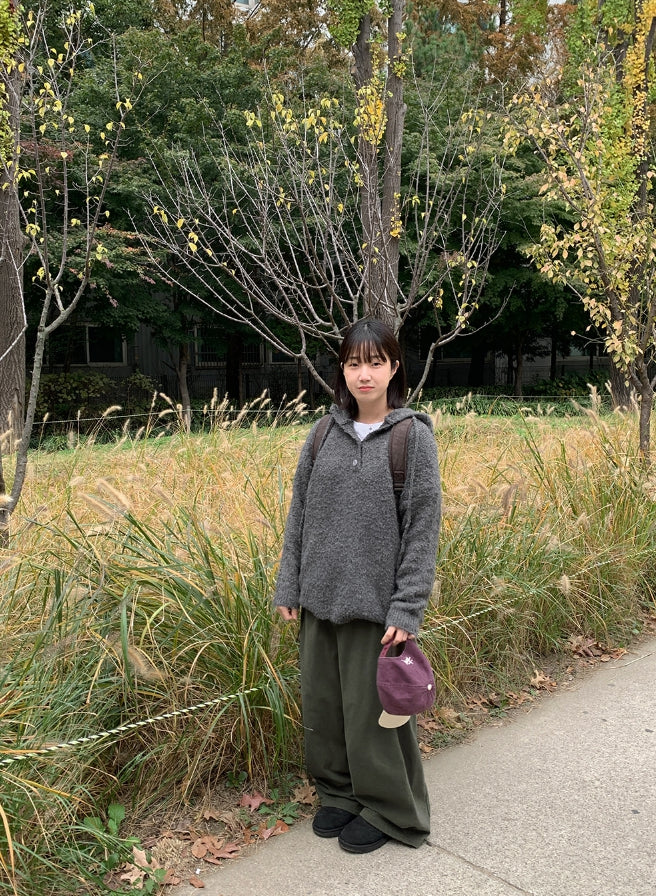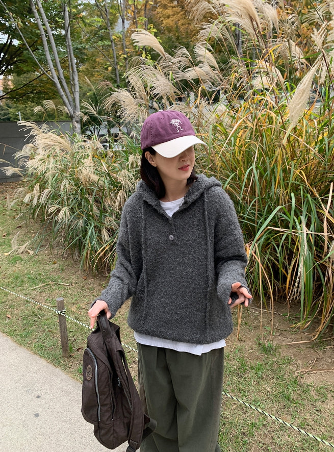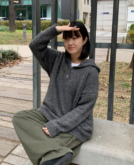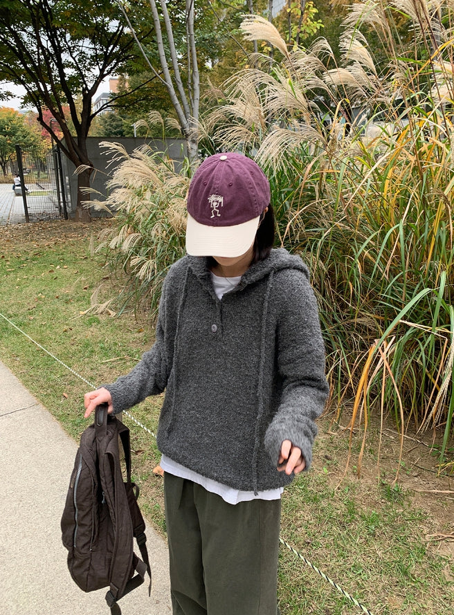 Fman Boucle Half-Open Wool Hood Knit - Wool 50