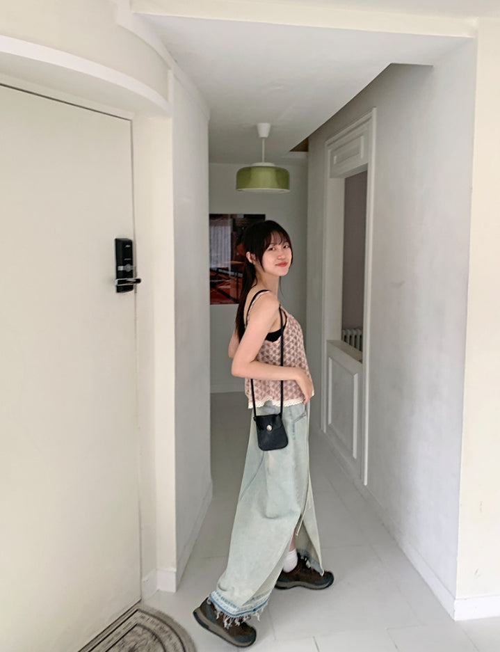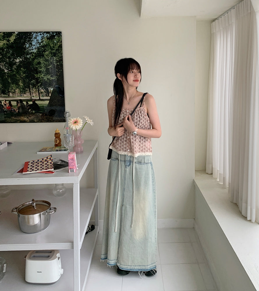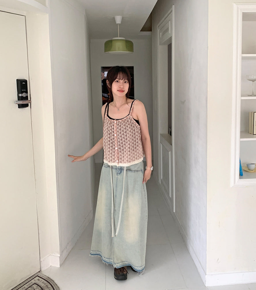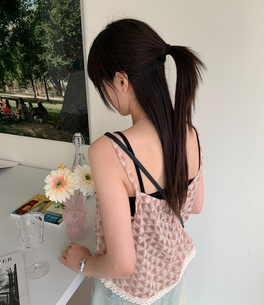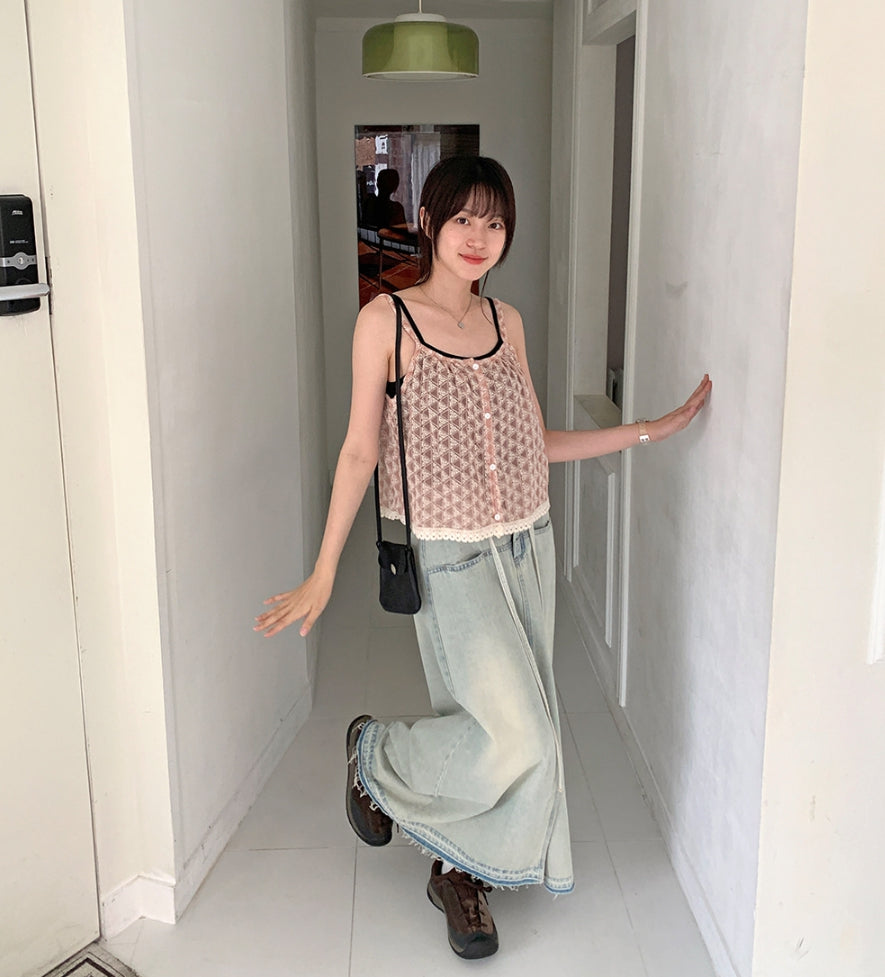 Fmandy Button Lace Sleeveless Blouse