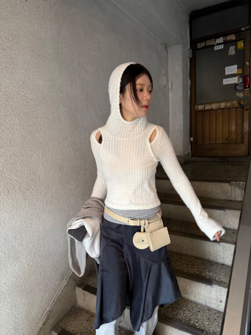 FUR SLIT HOOD T