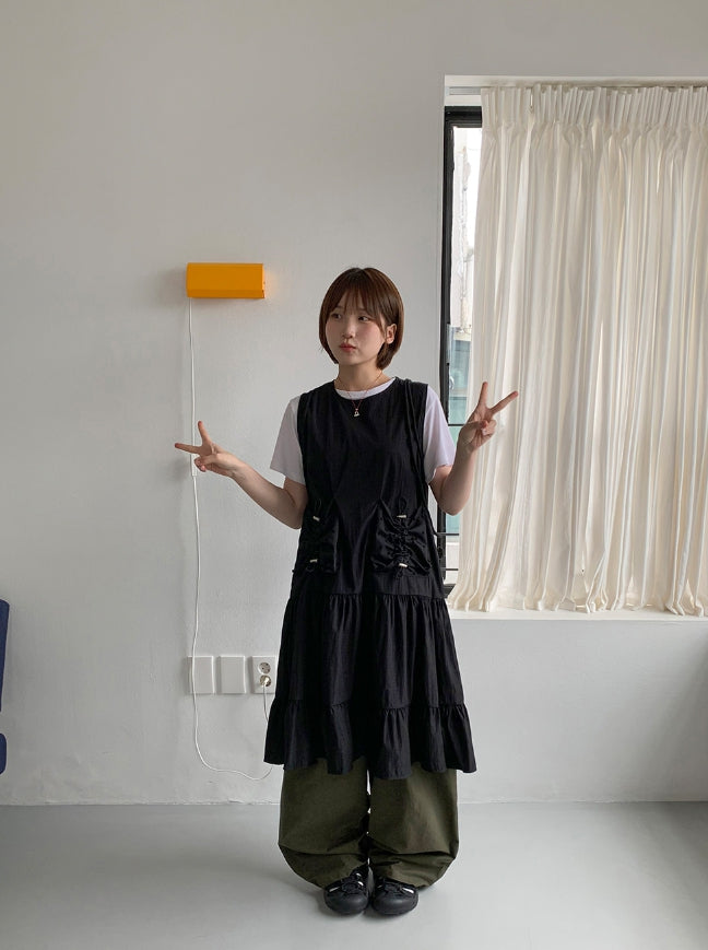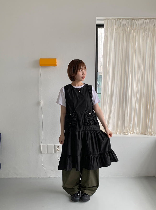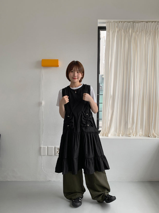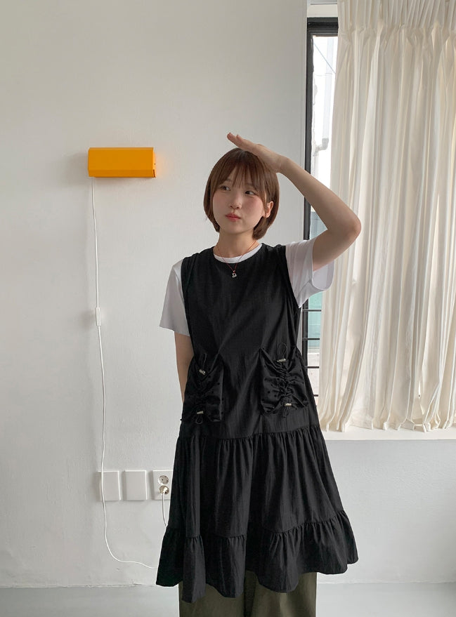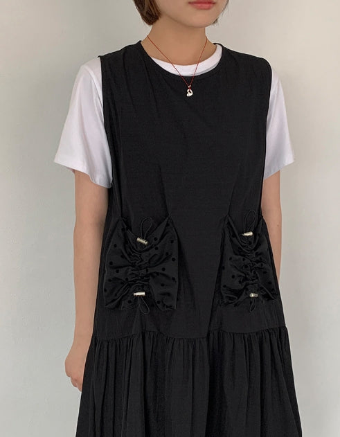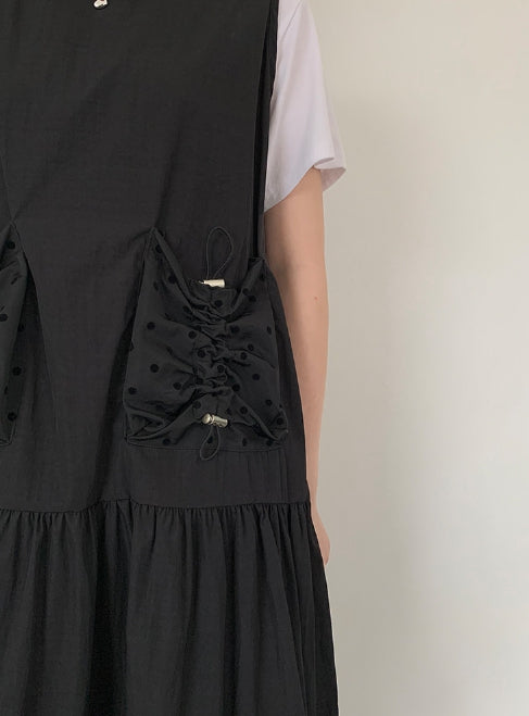 ハボムドットナイロンレイヤードノースリーブワンピース
