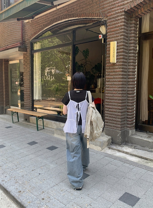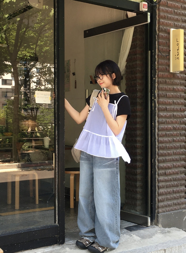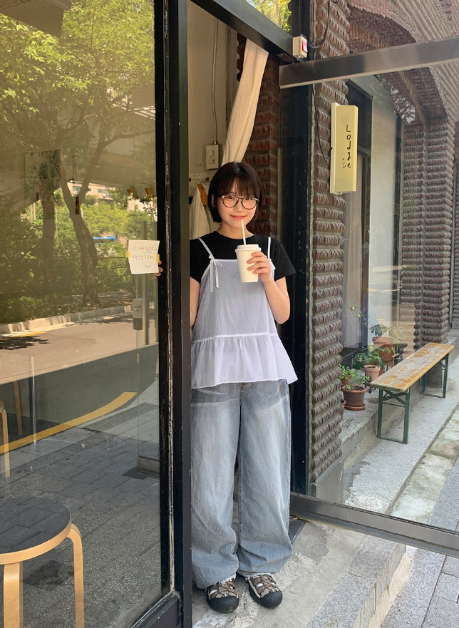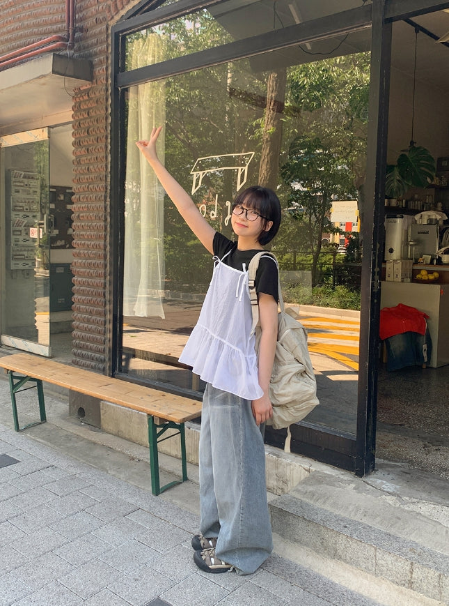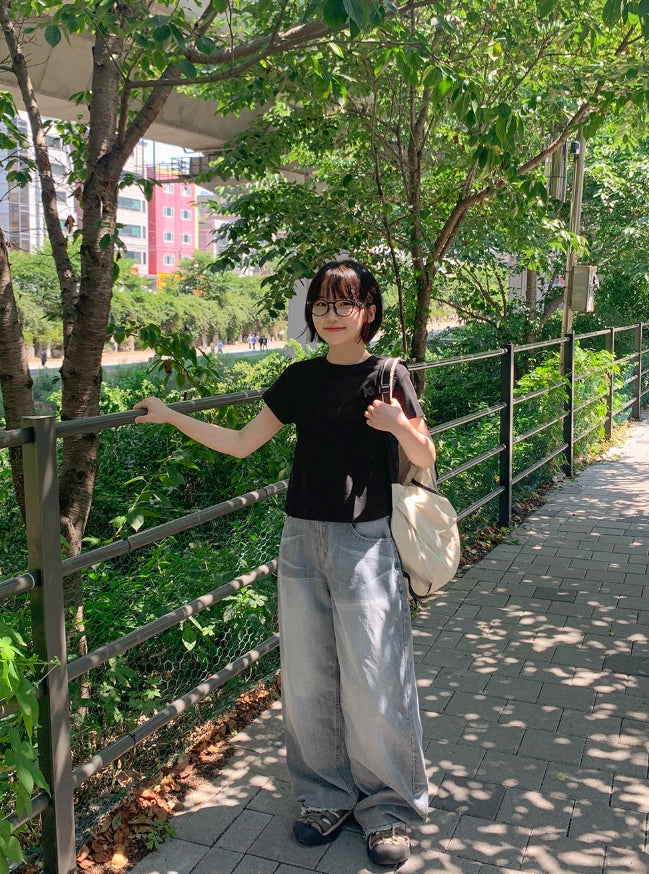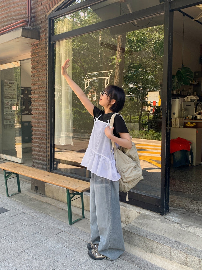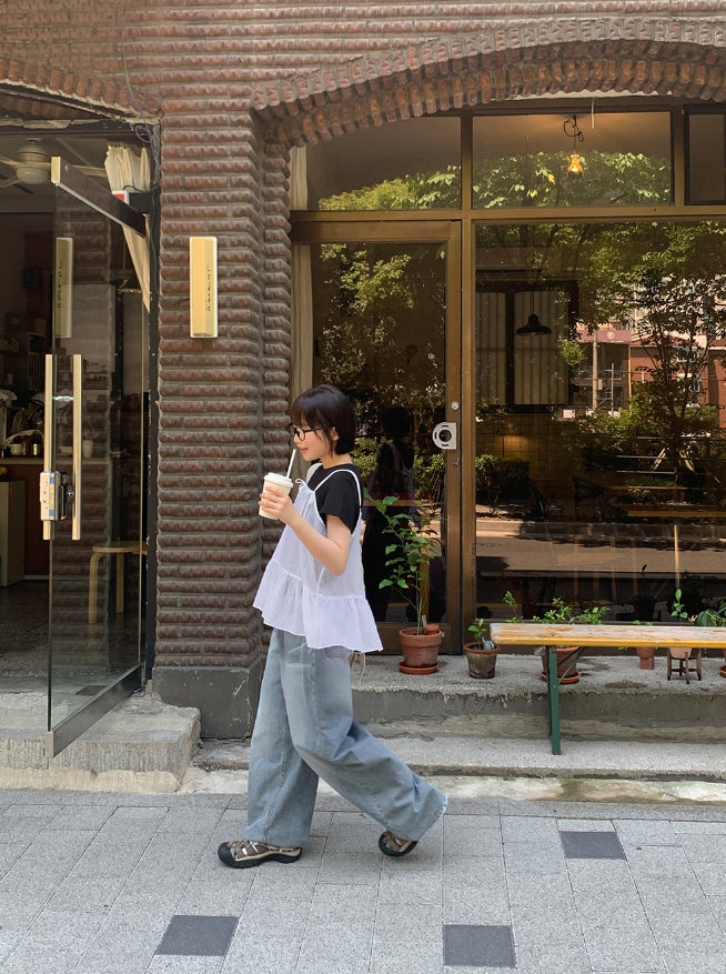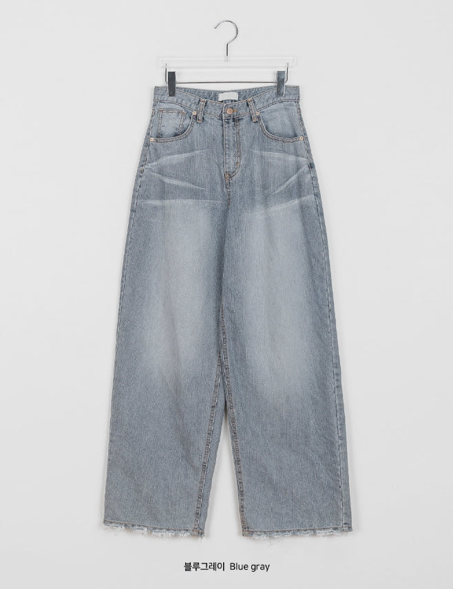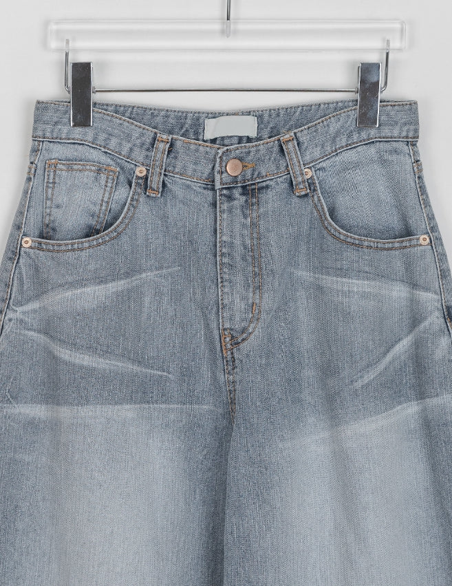 ハココダメージキャットウォッシング加工ワイドデニムパンツ