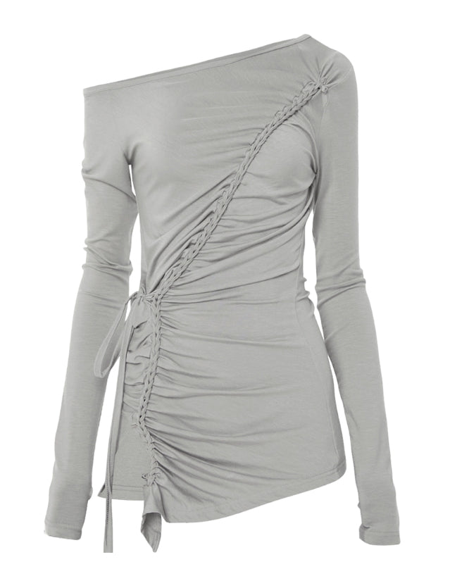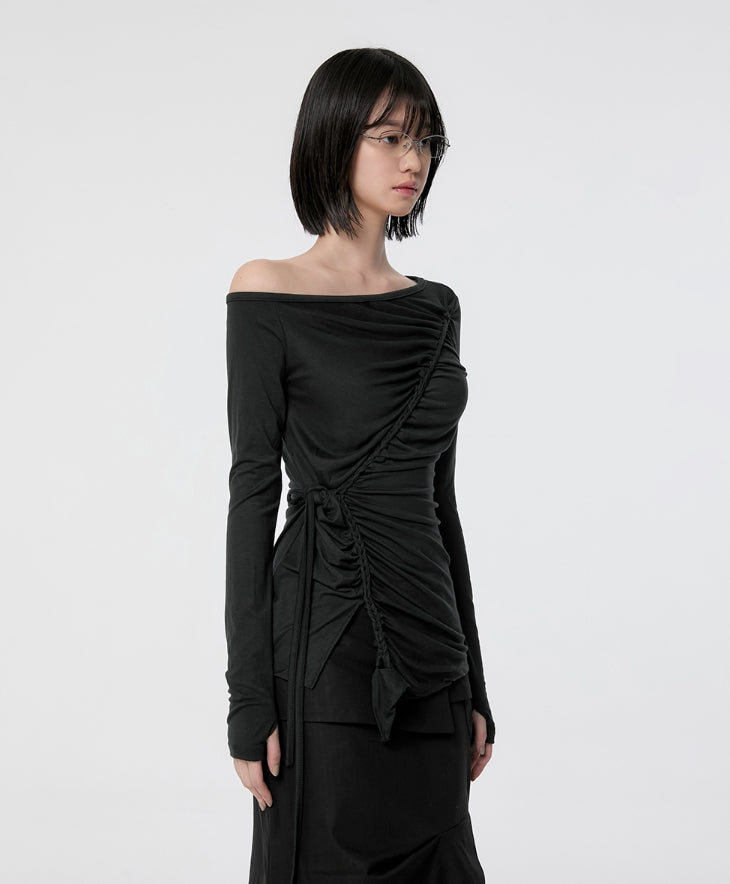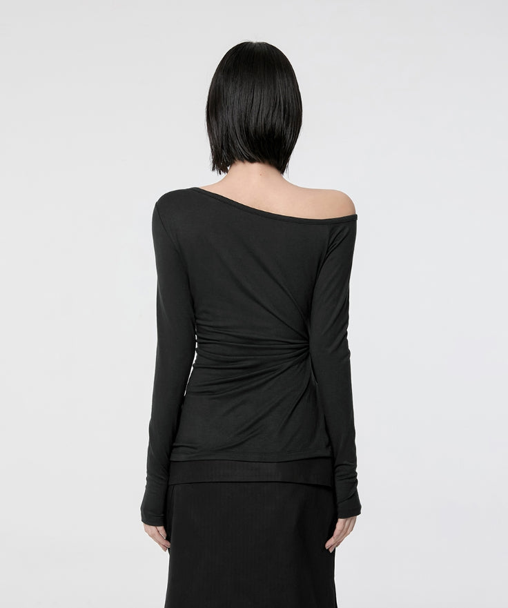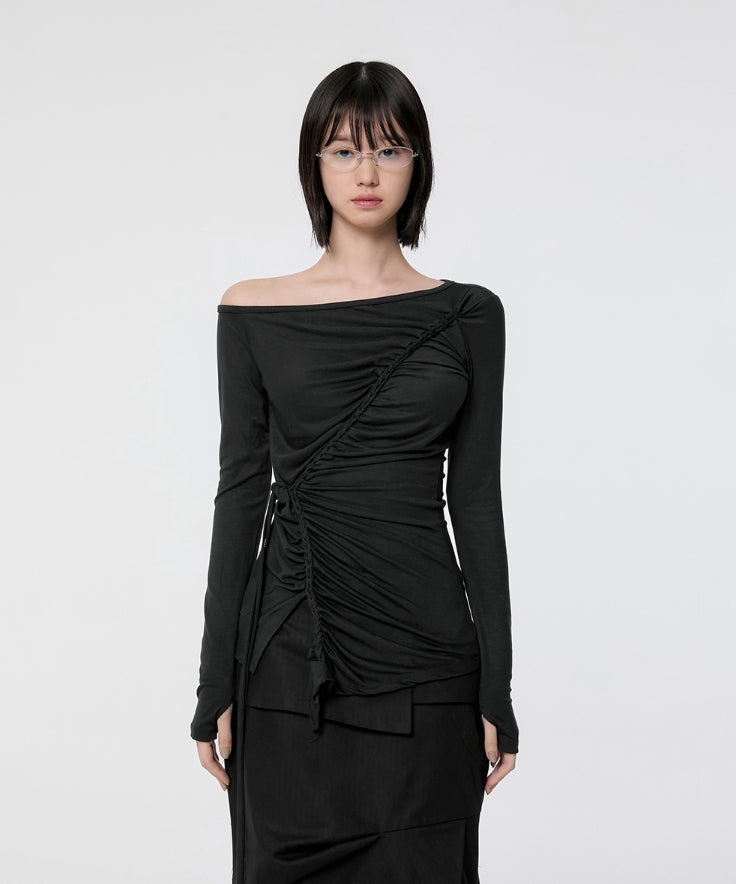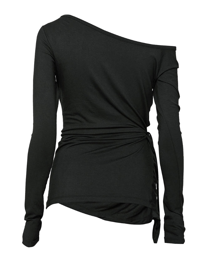 ハンドメイドツイストワンショルダー長袖Tシャツ