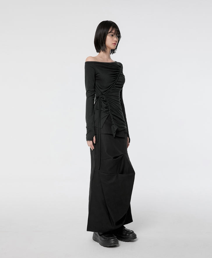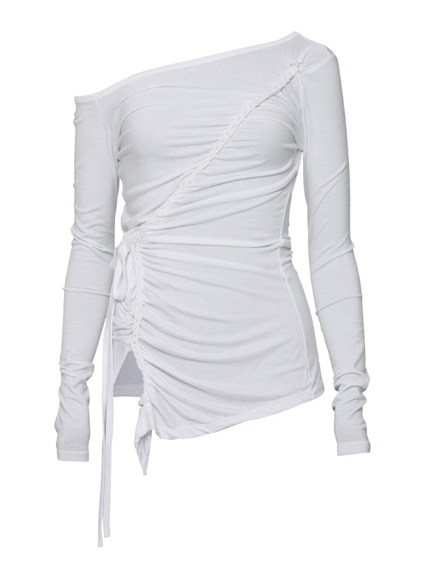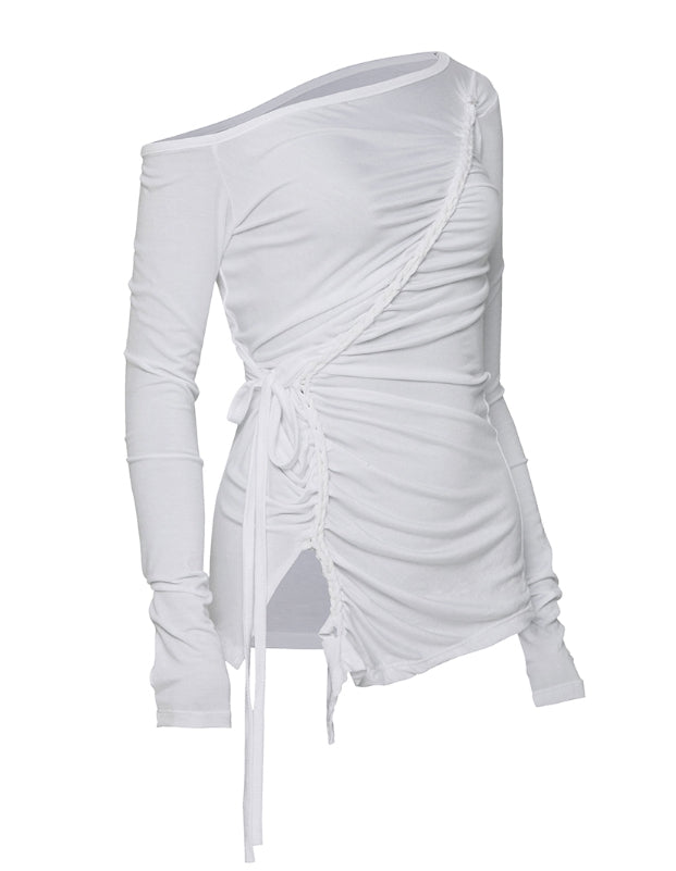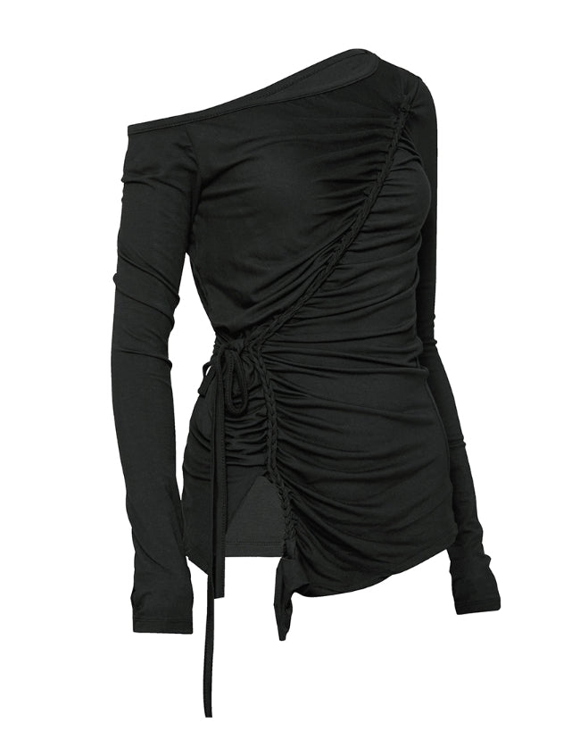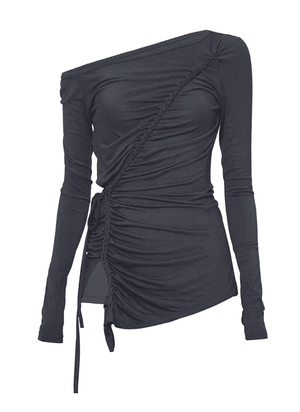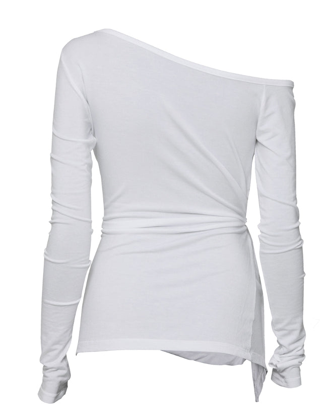 ハンドメイドツイストワンショルダー長袖Tシャツ