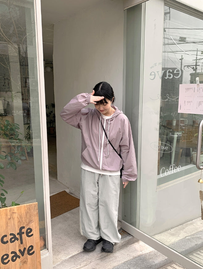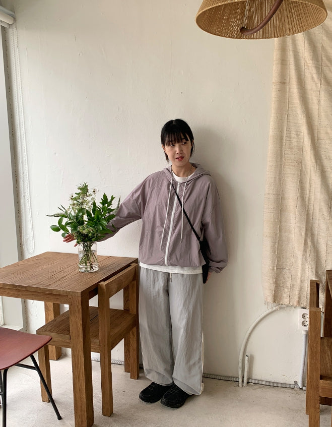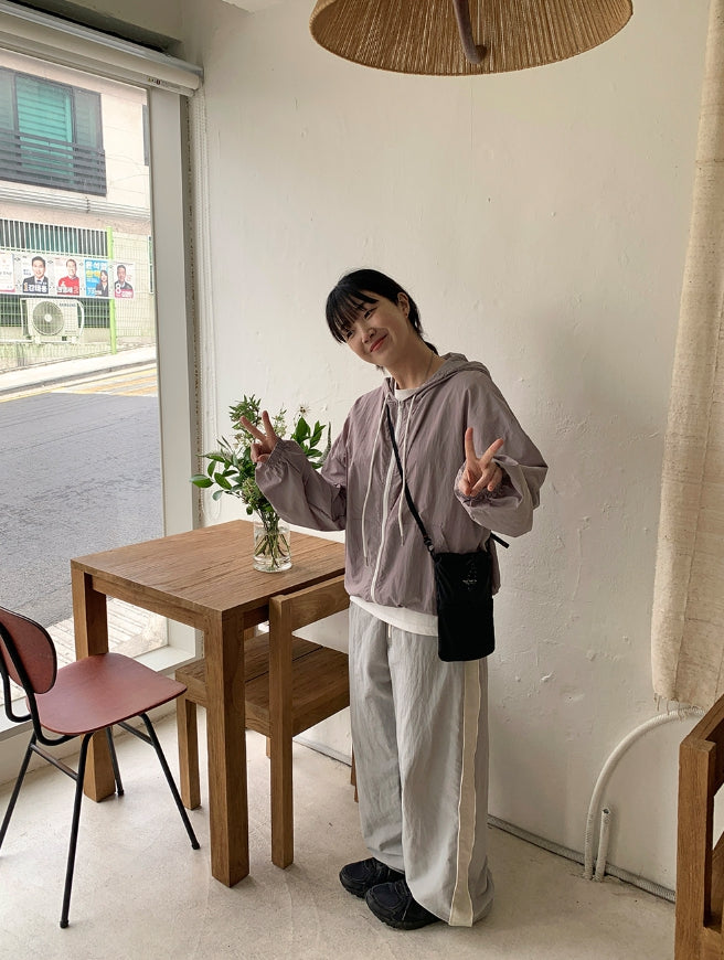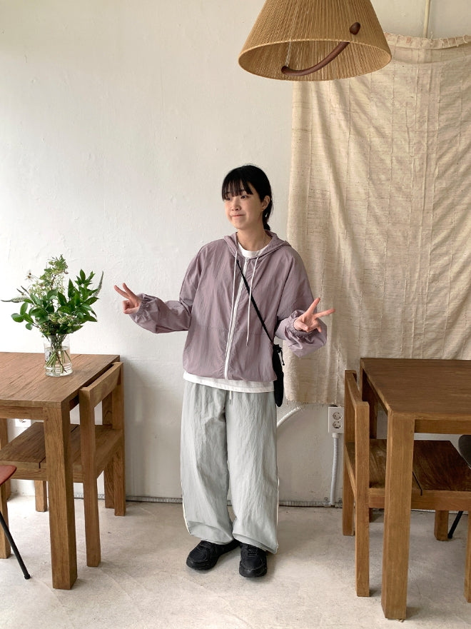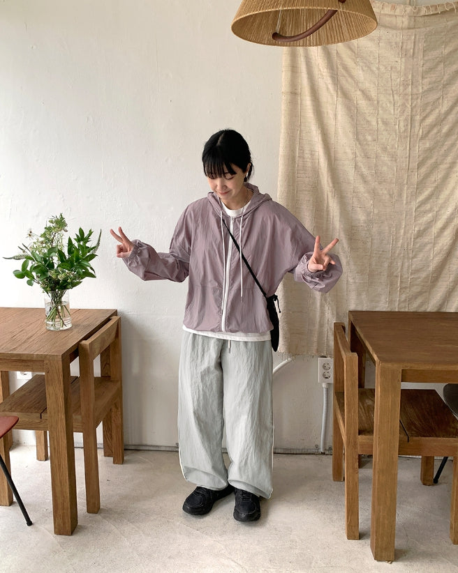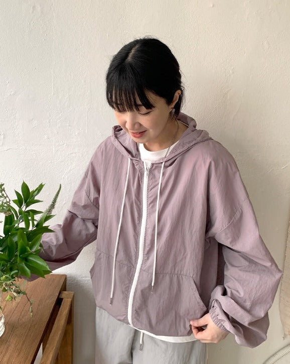 Harling hood nylon wind zip-up