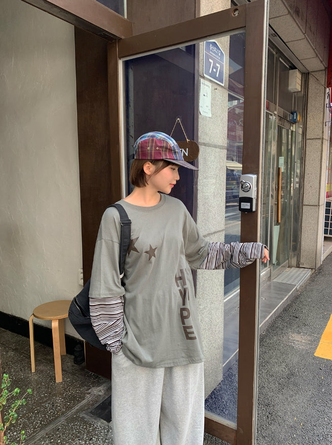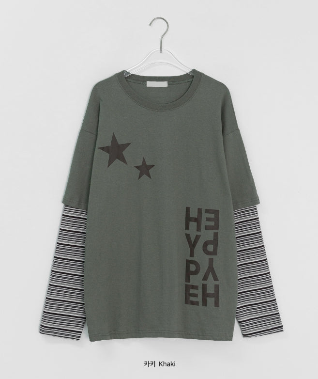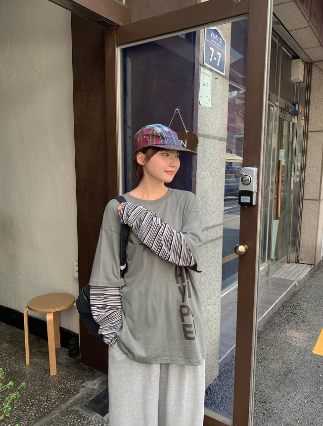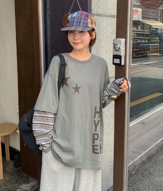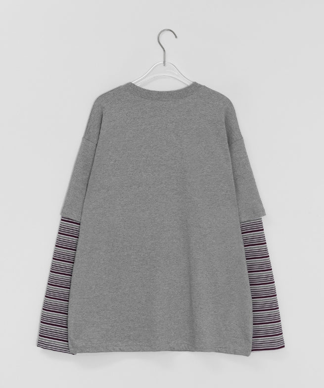 ハスリンストライプレイヤードオーバー長袖Tシャツ
