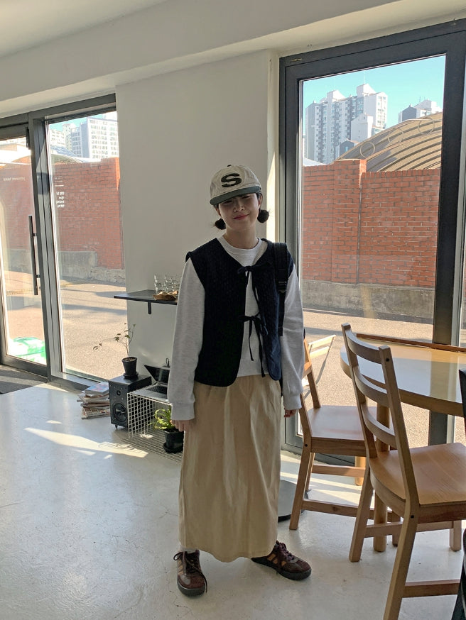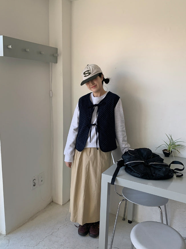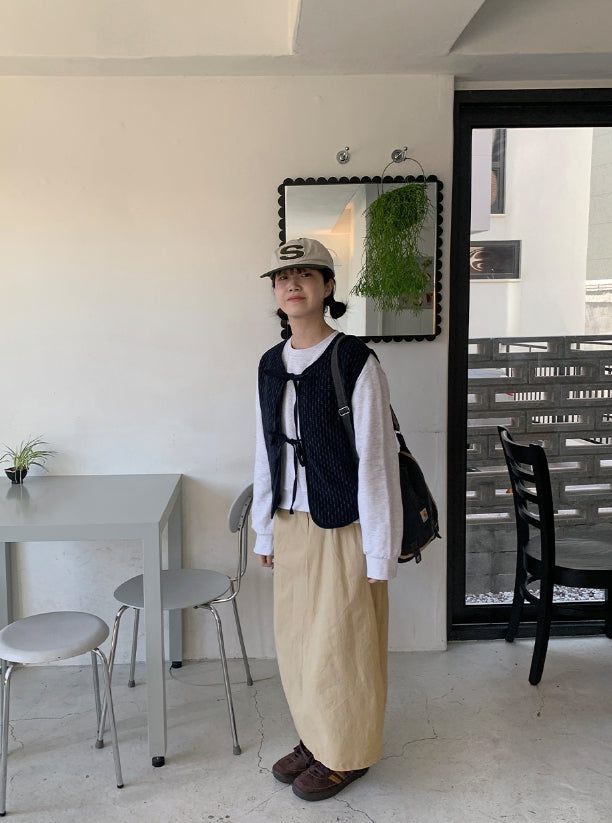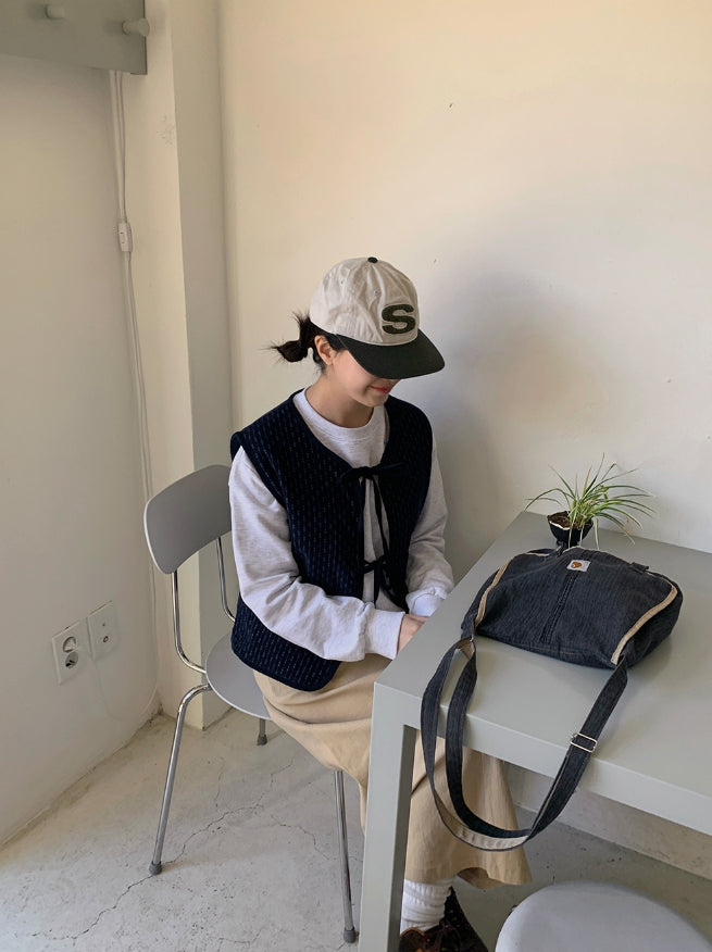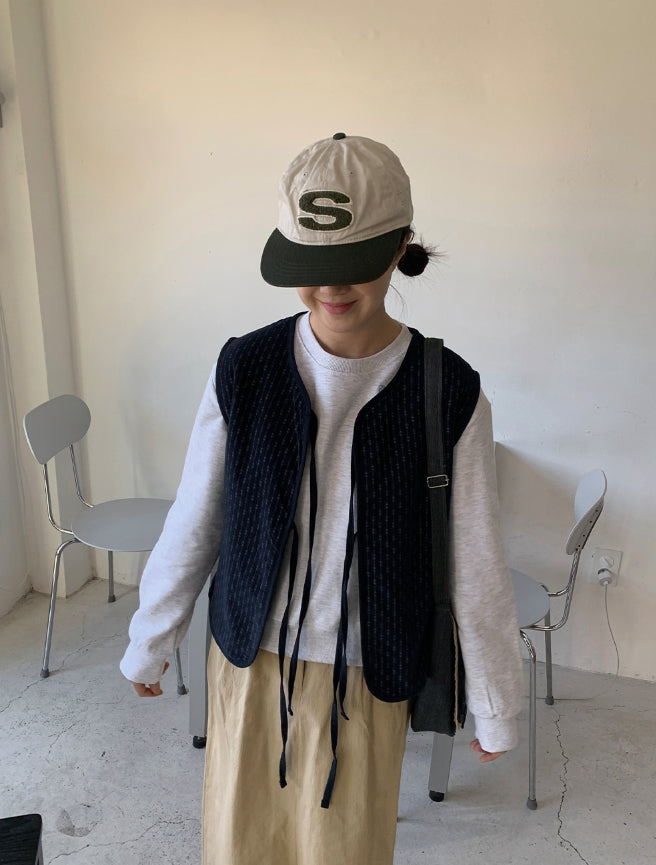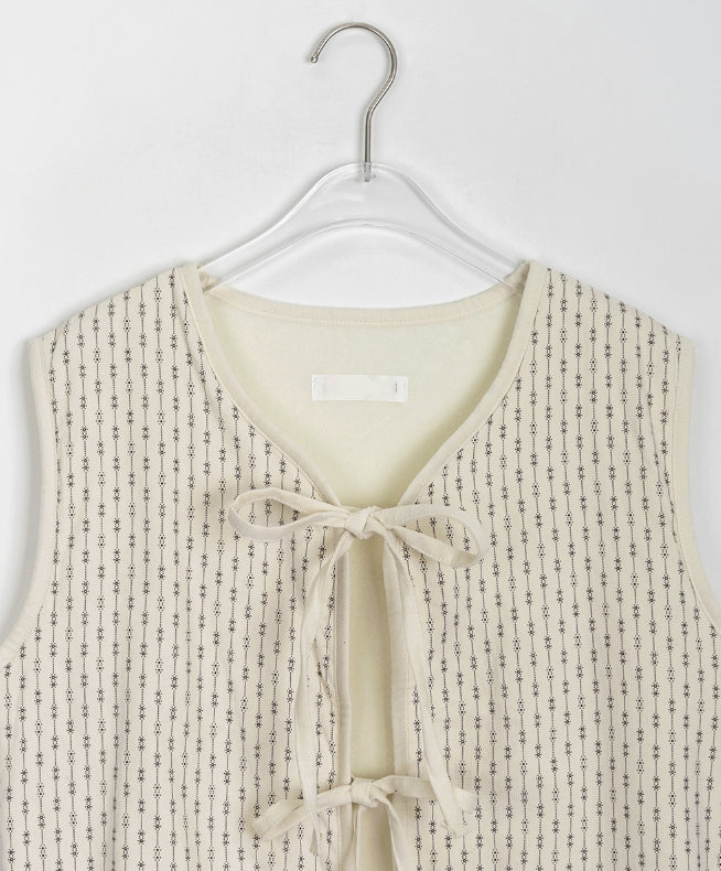 ヒキンコーデュロイパターン裏起毛リボンベスト