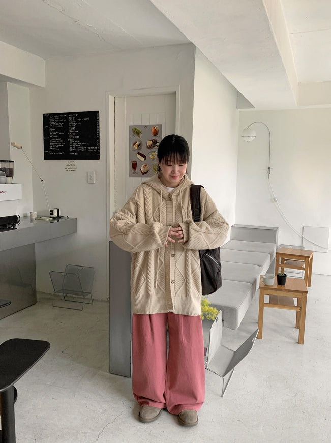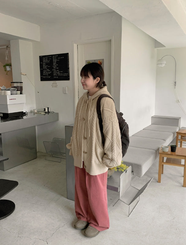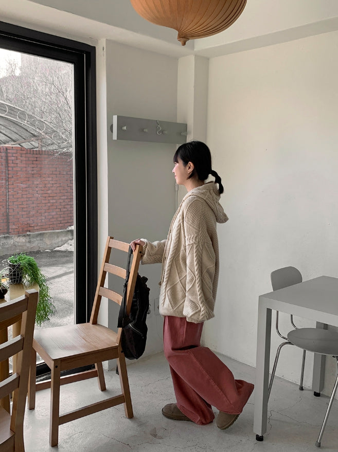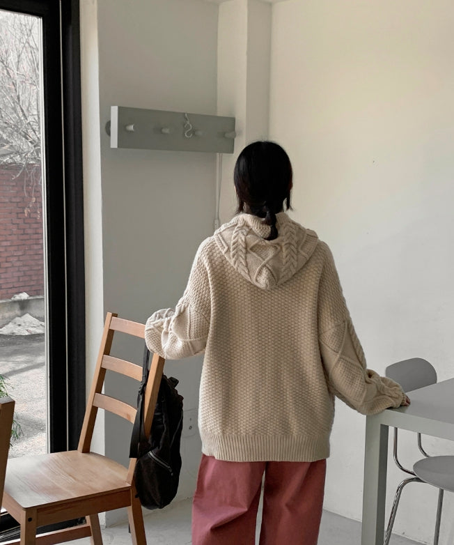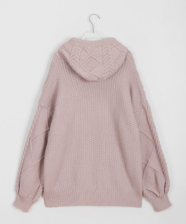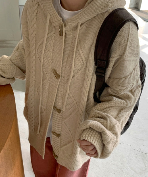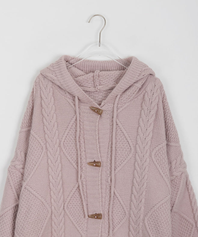 ヘルバーンダッフルケーブルフードカーディガン