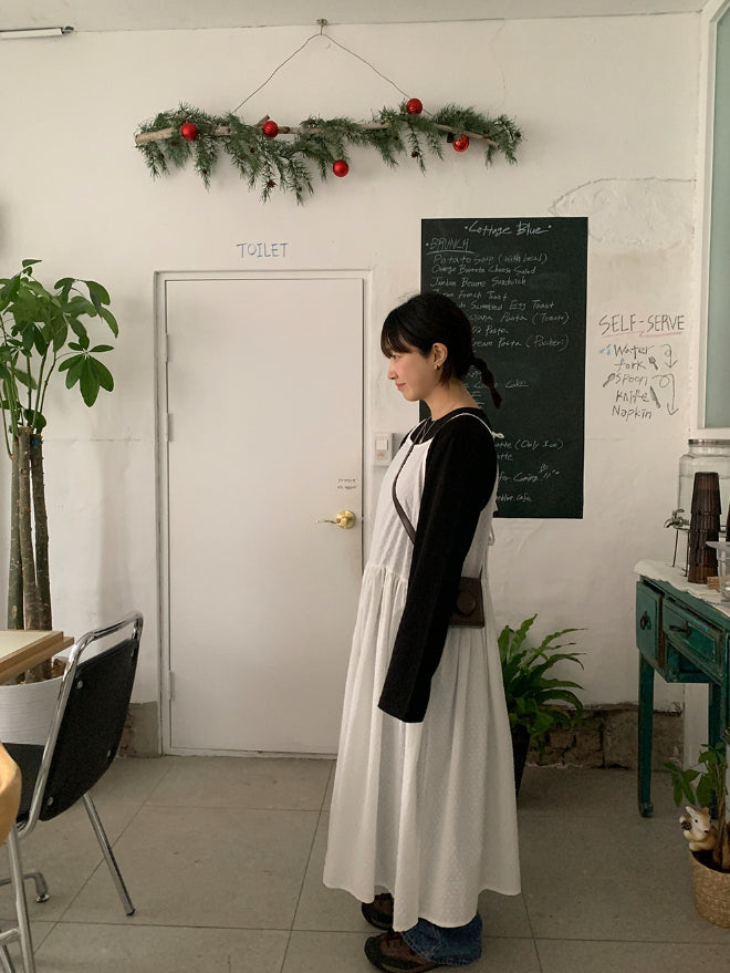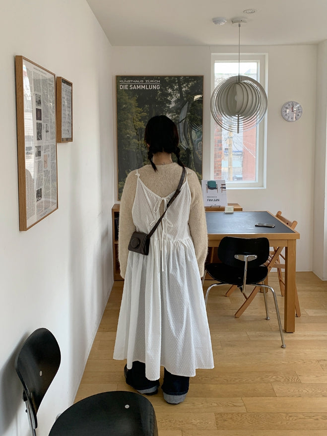 ヘムズツーウェイドットリボンノースリーブワンピース