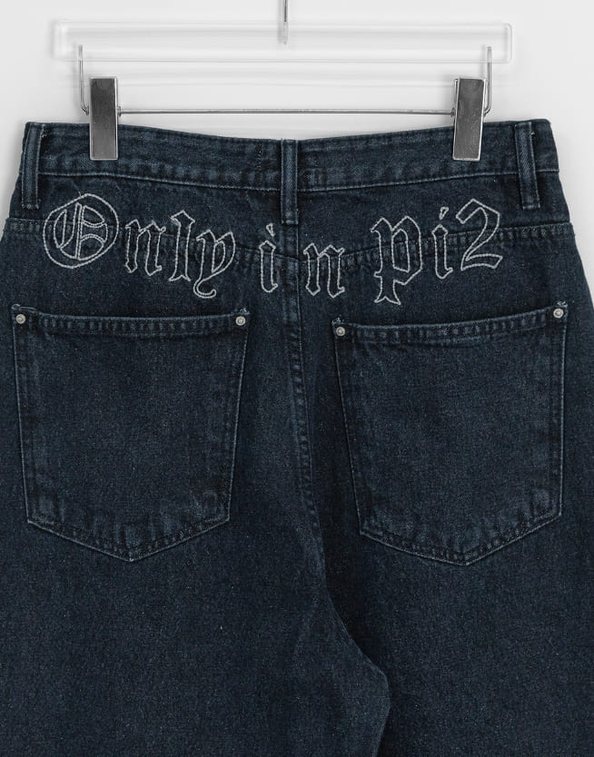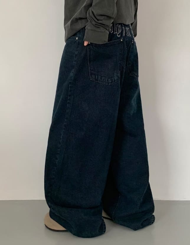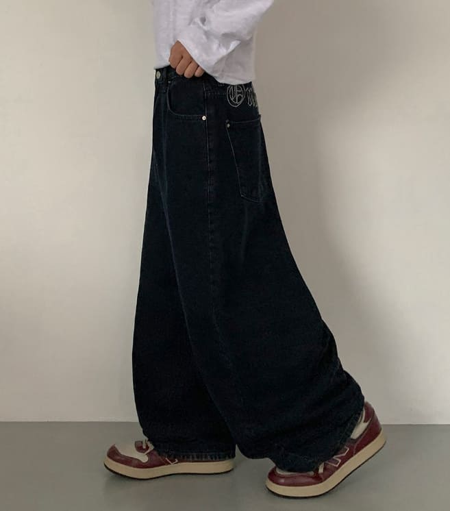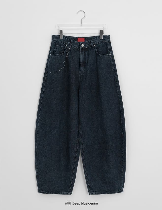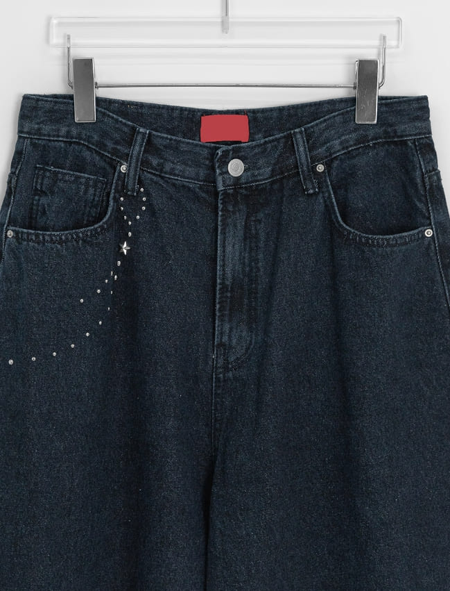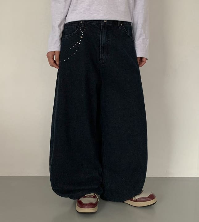 Hendelo Star Rivet Embroidery Balloon Denim Wide Pants