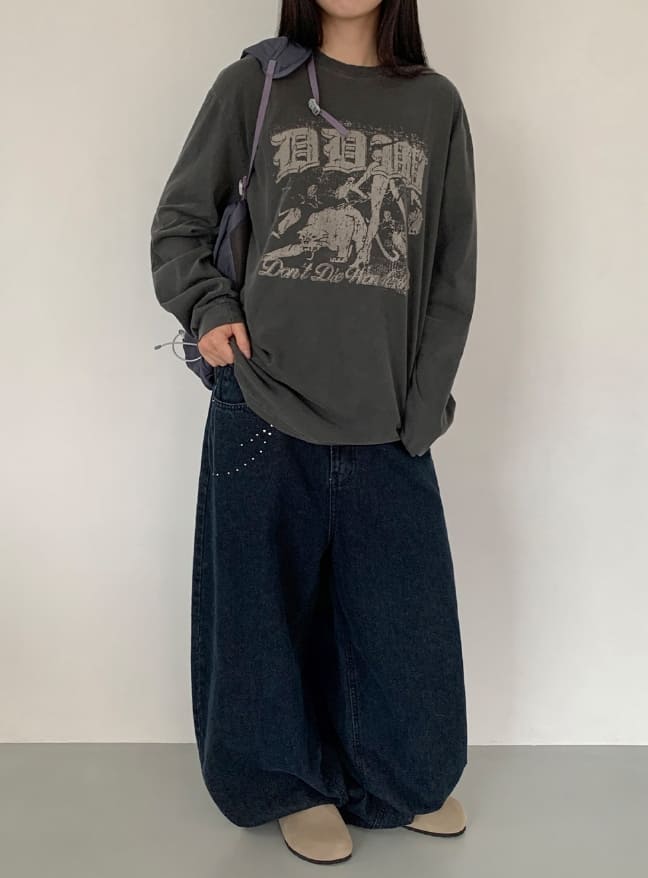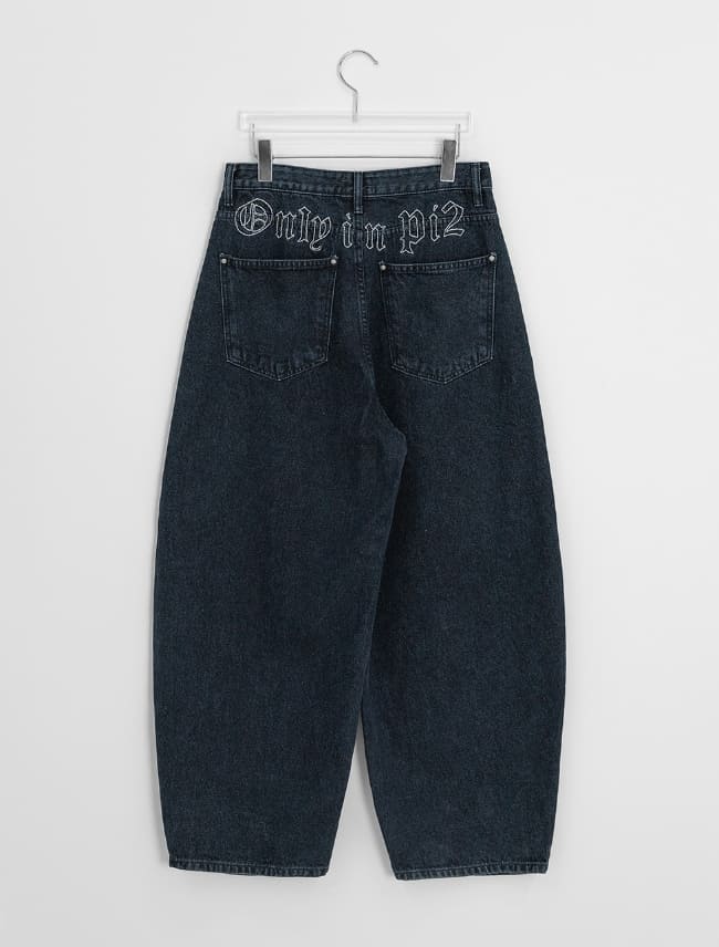フンデロスターリベット刺繍バルーンデニムワイドパンツ