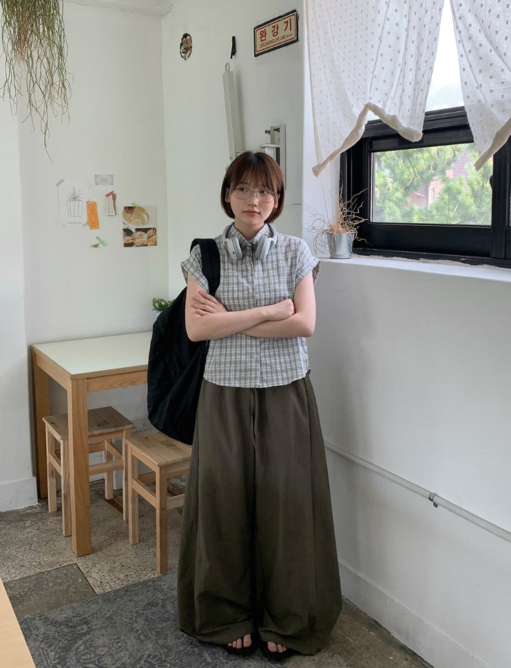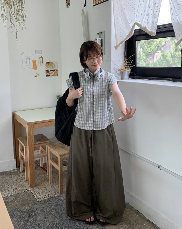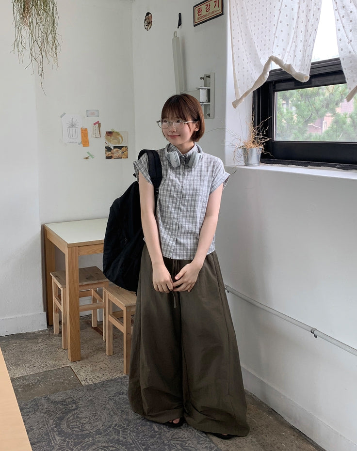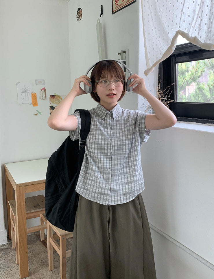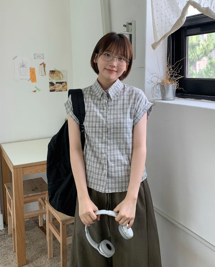 Hinbo Summer Check Roll-up Short Sleeve Shirt