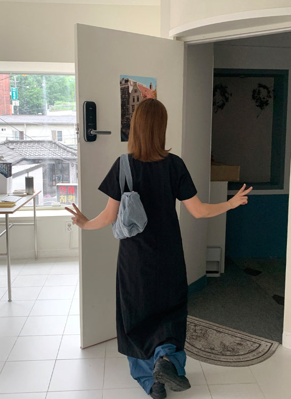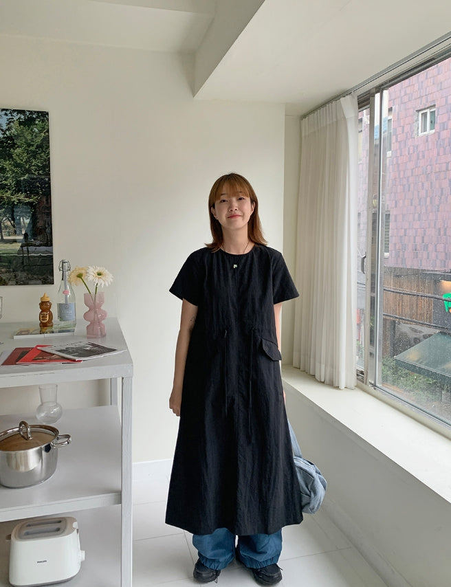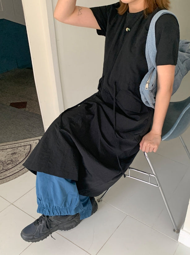 Hirot Short Sleeve Nylon Pocket Long One Piece