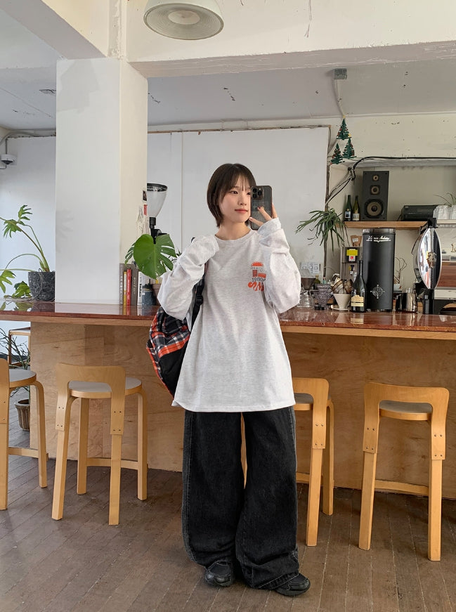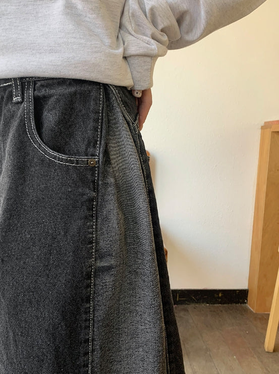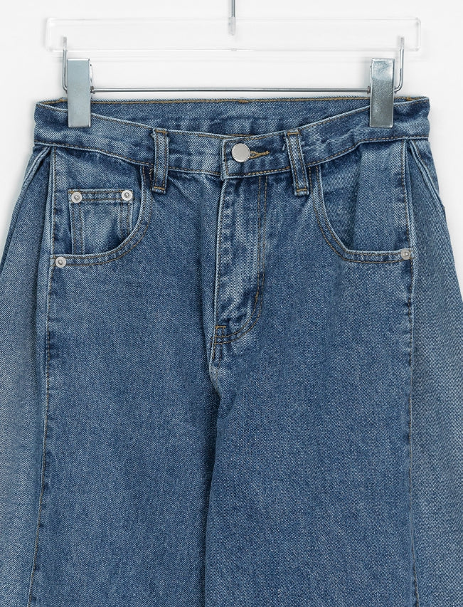ホエニサイドピンタックスナップボタンワイドデニムパンツ