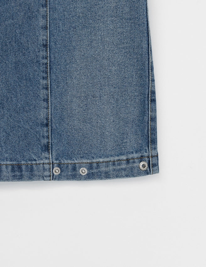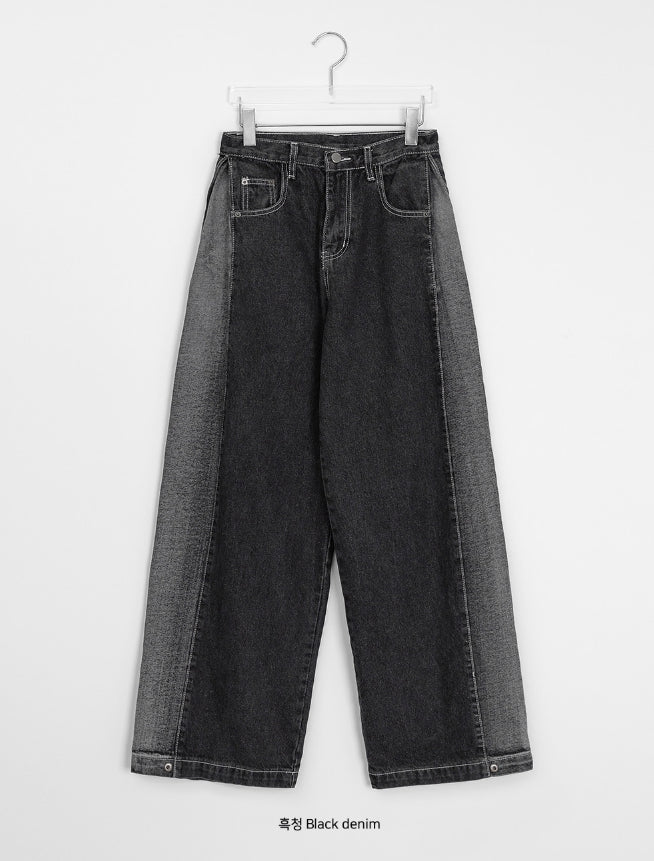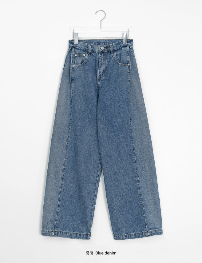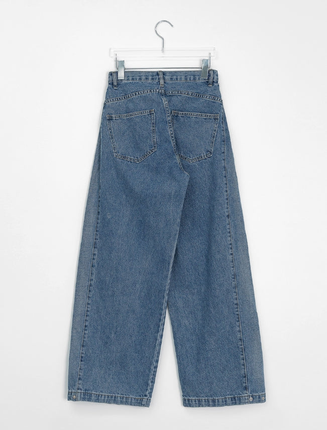 Hoeni Side Pintuck Snap Button Wide Denim Pants