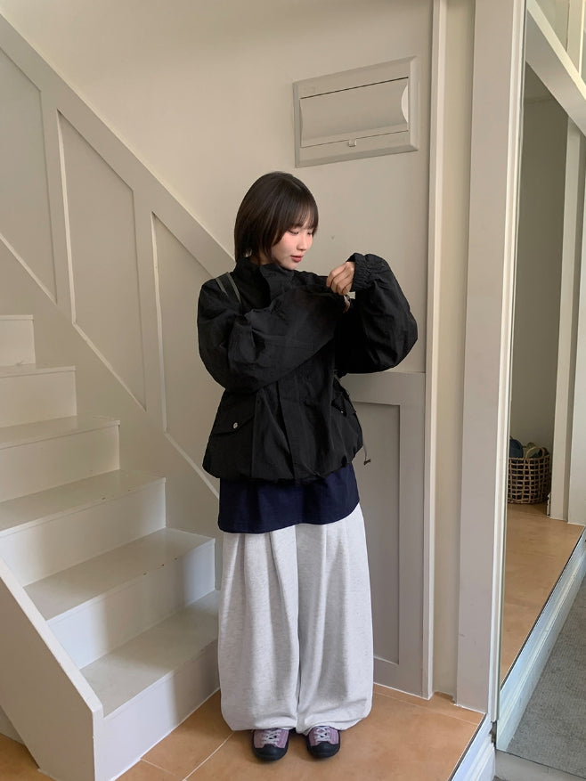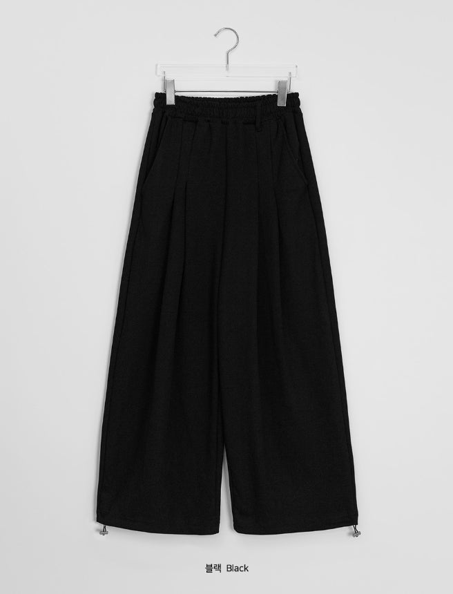 ホコニーバンディングストリングピンタックトレーニングワイドパンツ