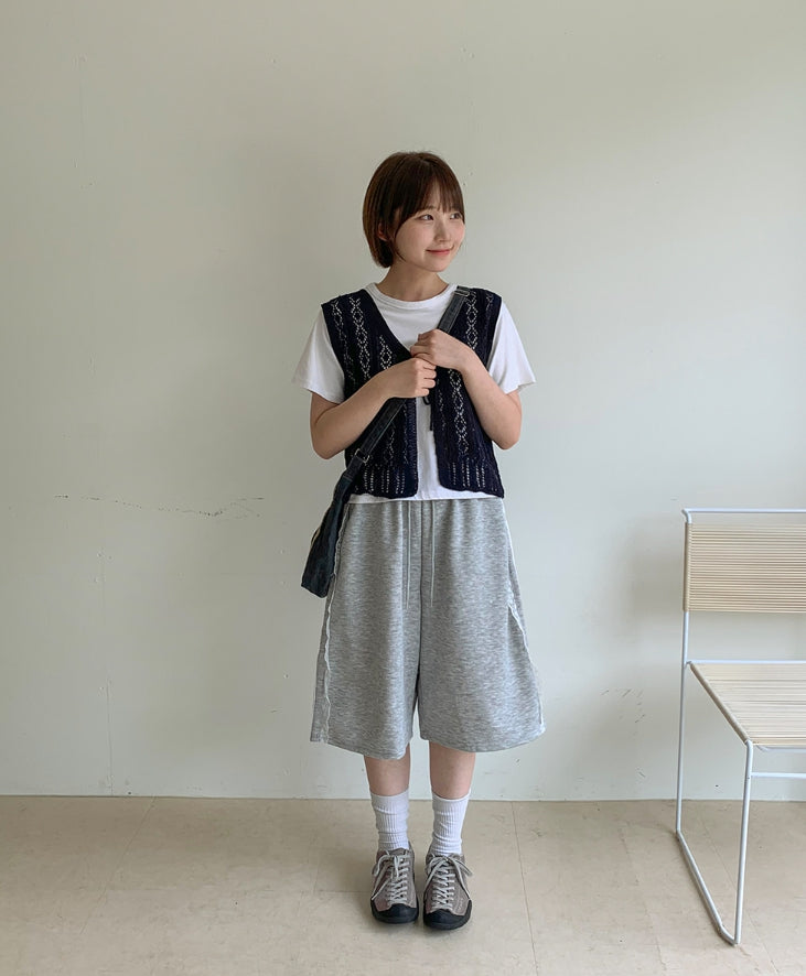 -ONE SIZE (ウエスト(ゴム)61-74 ヒップ118 股上33 股下27 もも周り77 裾周り73 総丈60)