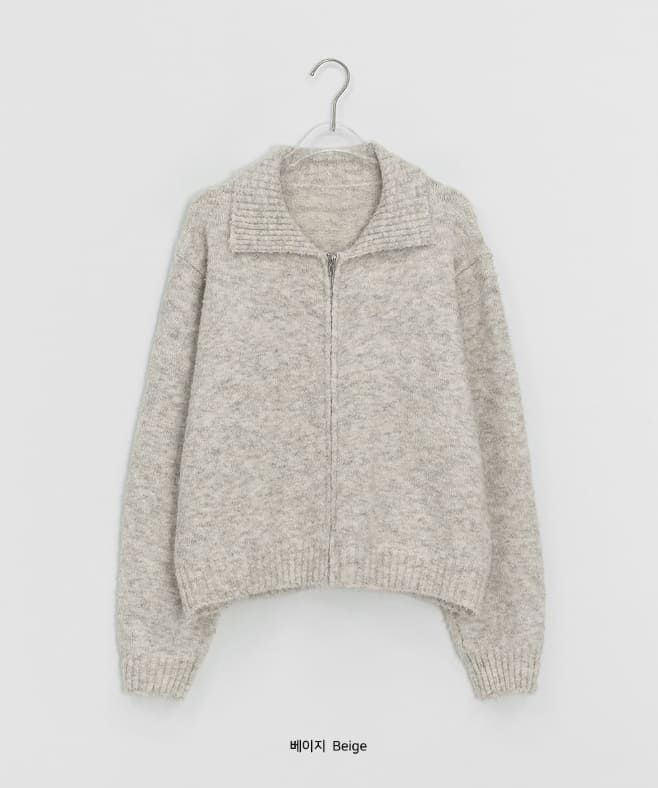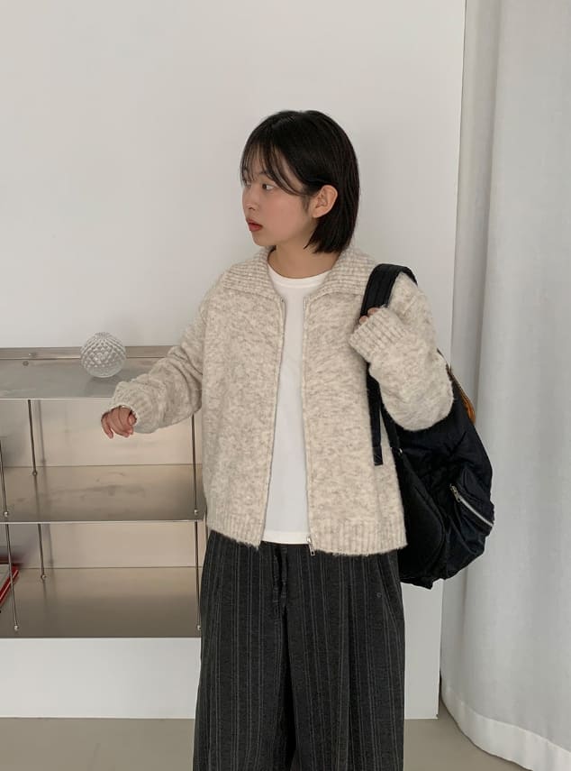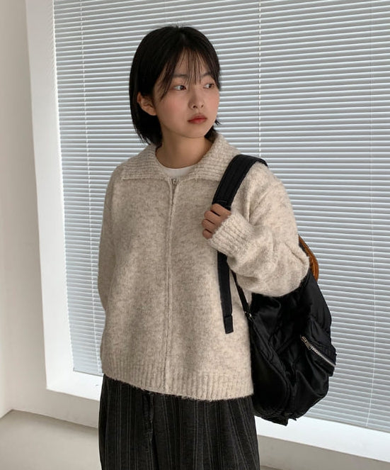 Homley Boucle Wool Collar Zip-Up Knit Cardigan