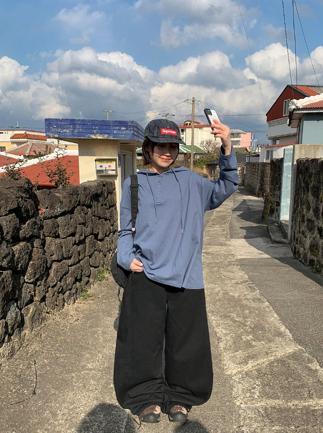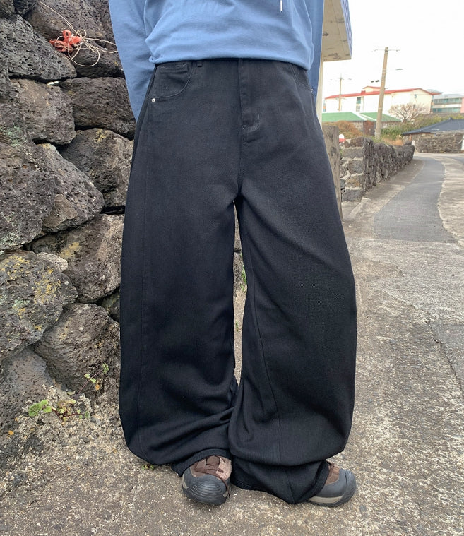 Homoki Side Pintuck Back Adjust Wide Cotton Pants