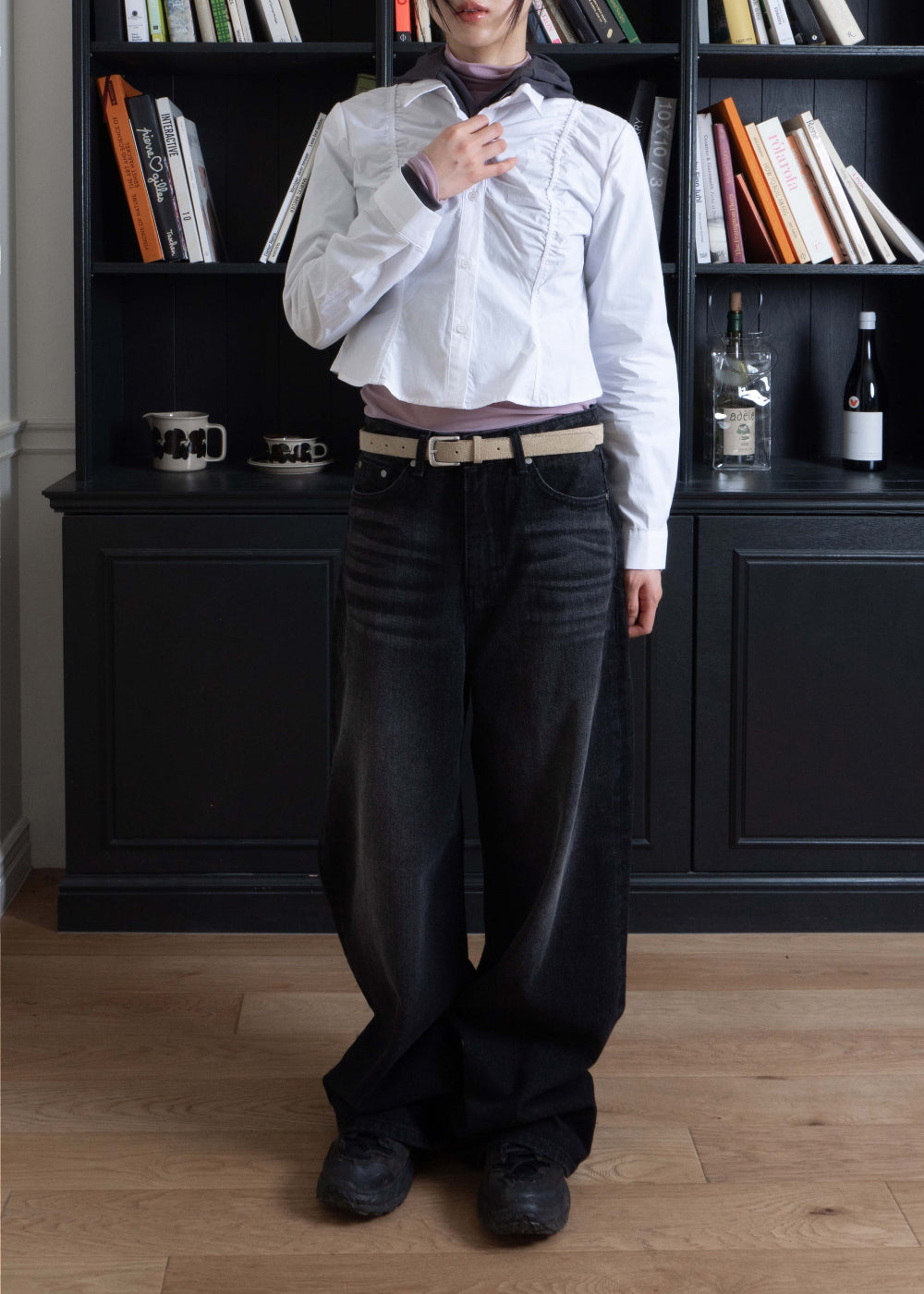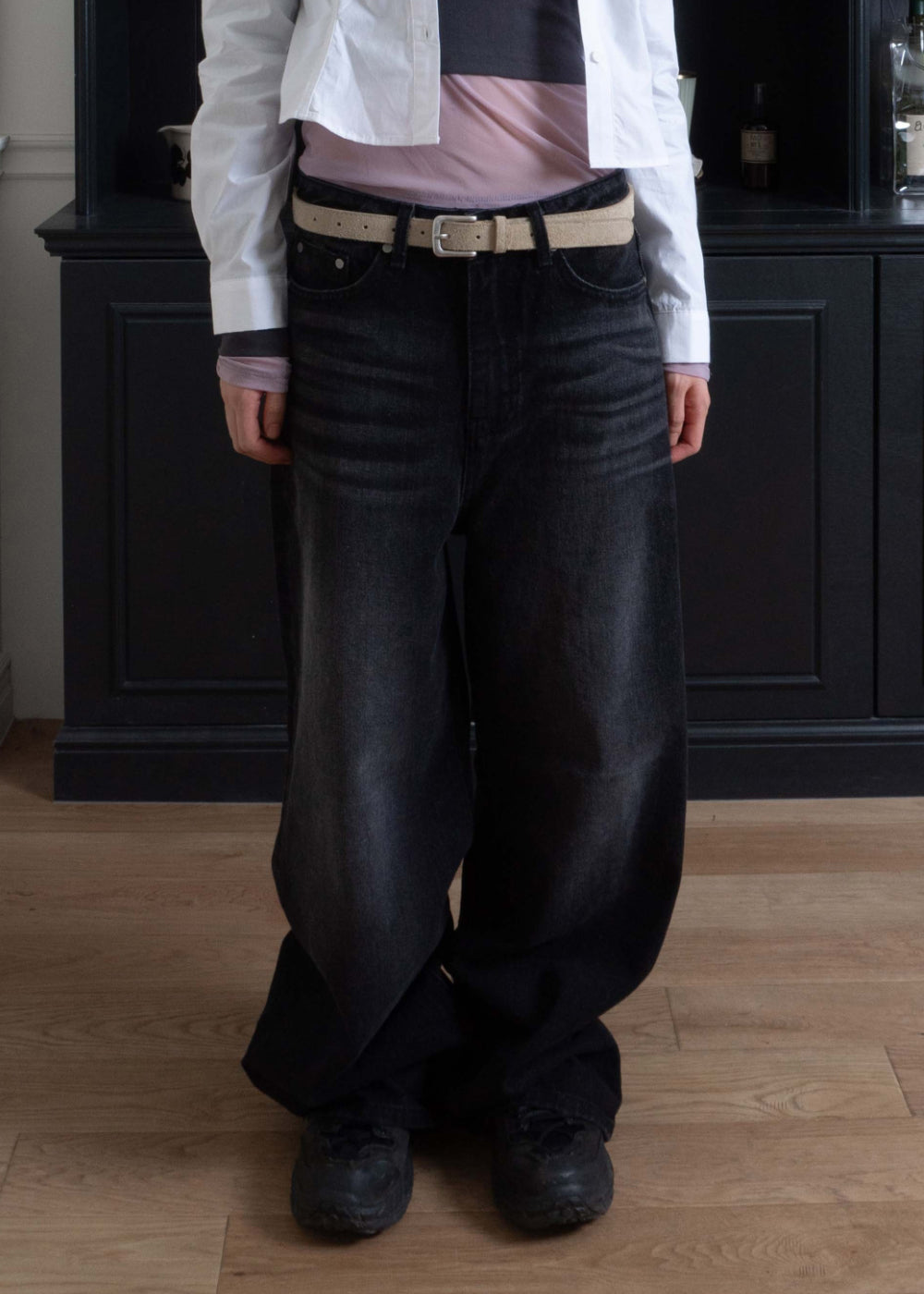 マキシブラックワイドデニムパンツ