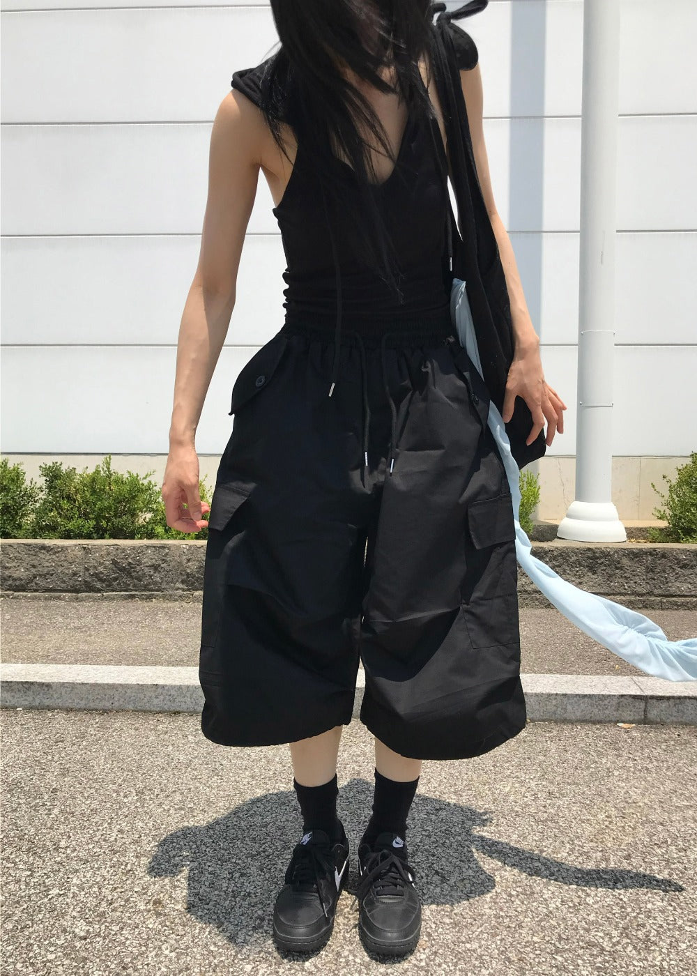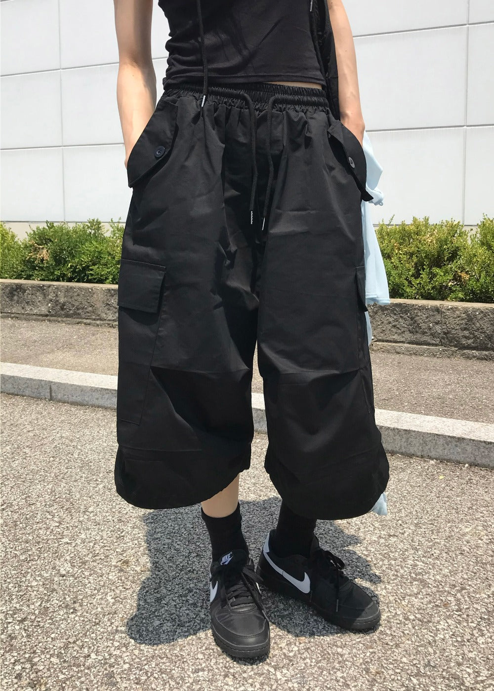-ONE SIZE (ウエスト(ゴム)60-90 ヒップ112 股上37 股下33 もも周り80 裾周り80 総丈70)