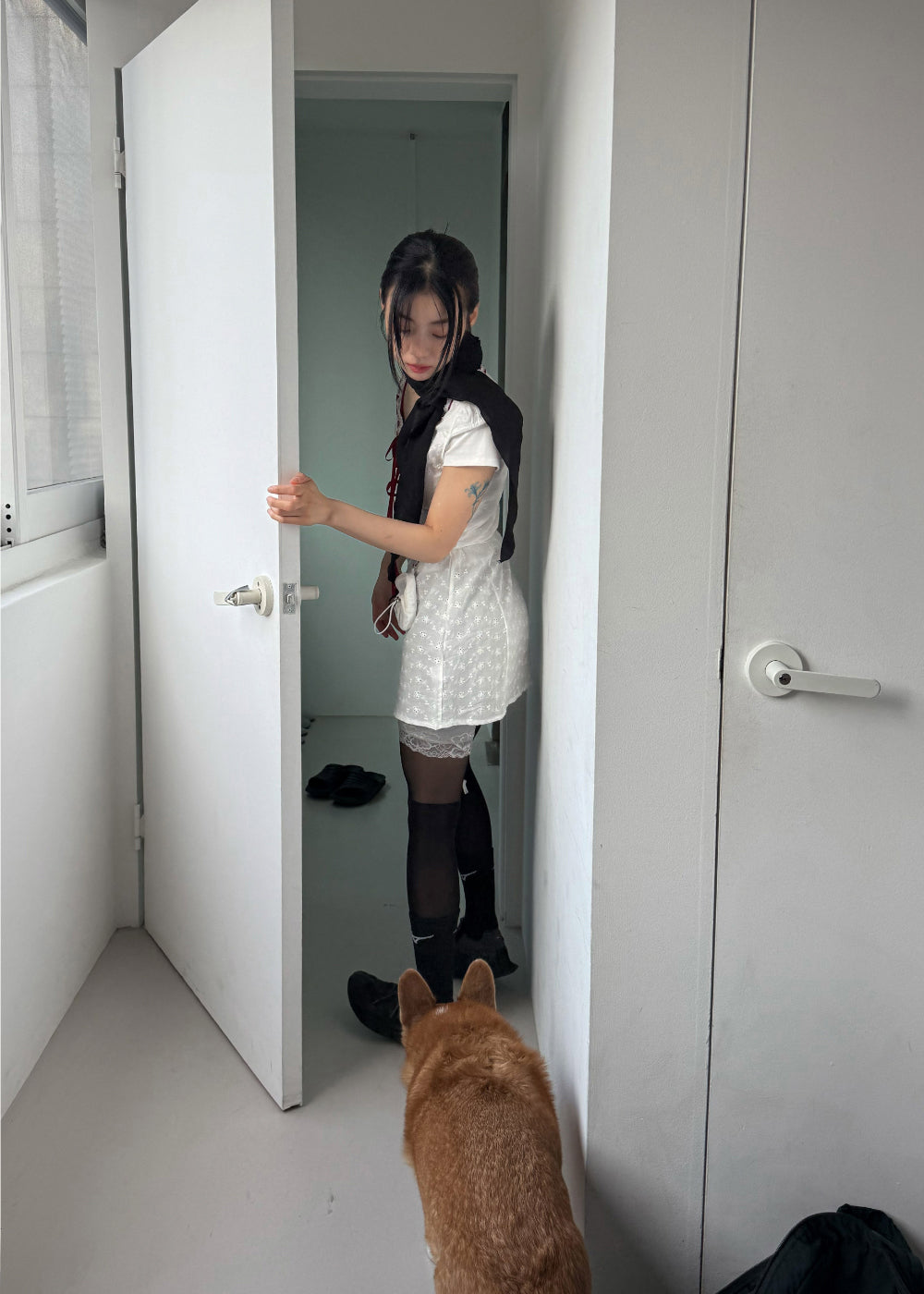 PERFORATED LACE MINI DRESS