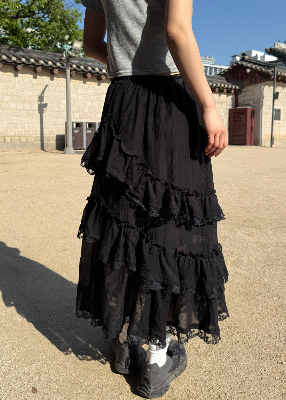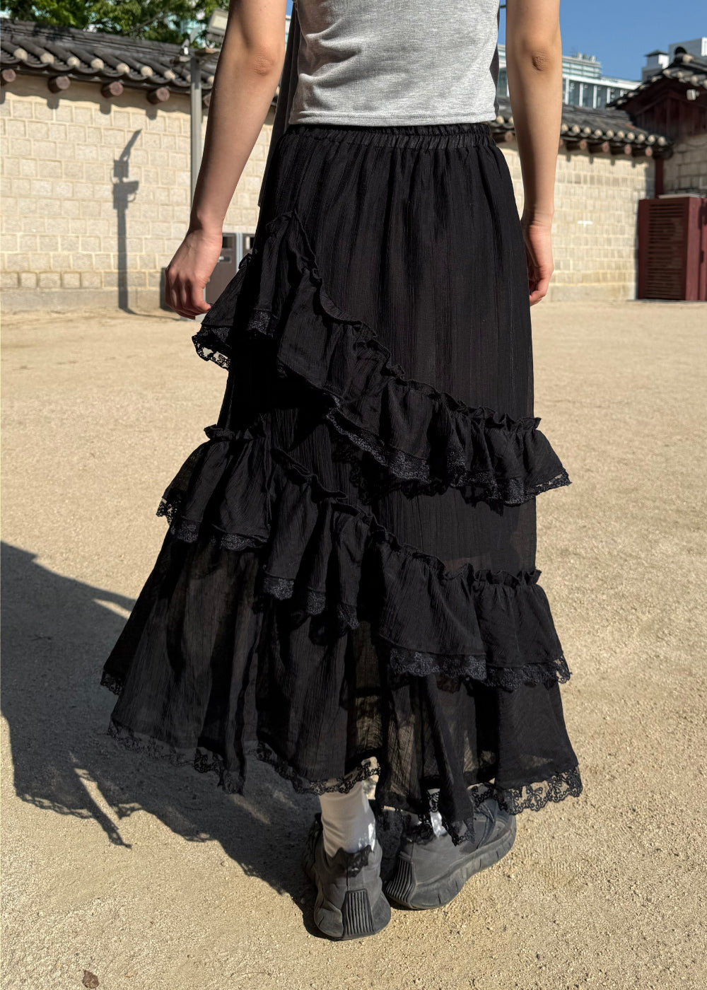 リブフリルロングスカート