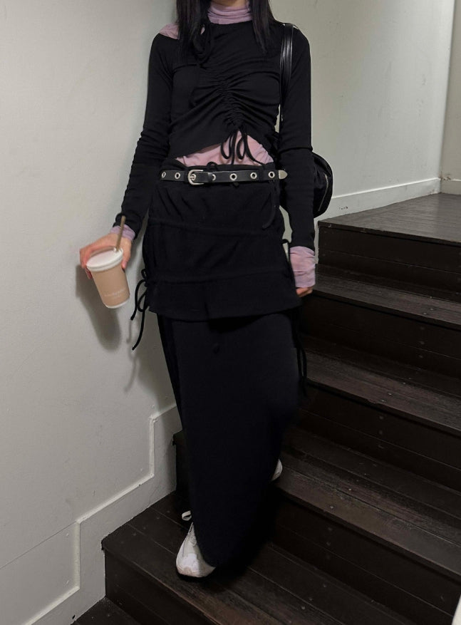 −ONE SIZE (ウエスト(ゴム)60-84 ヒップ104 総丈37)