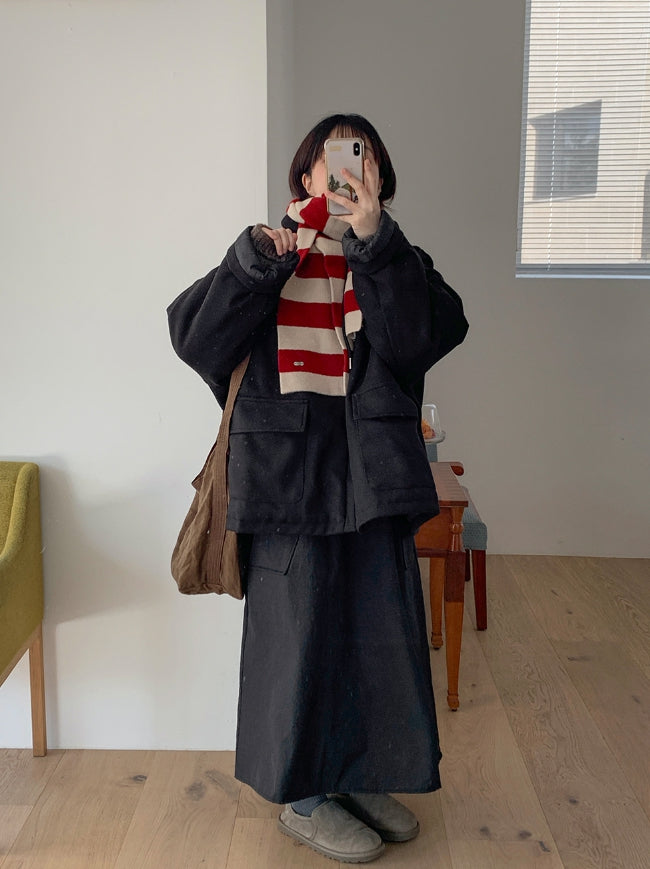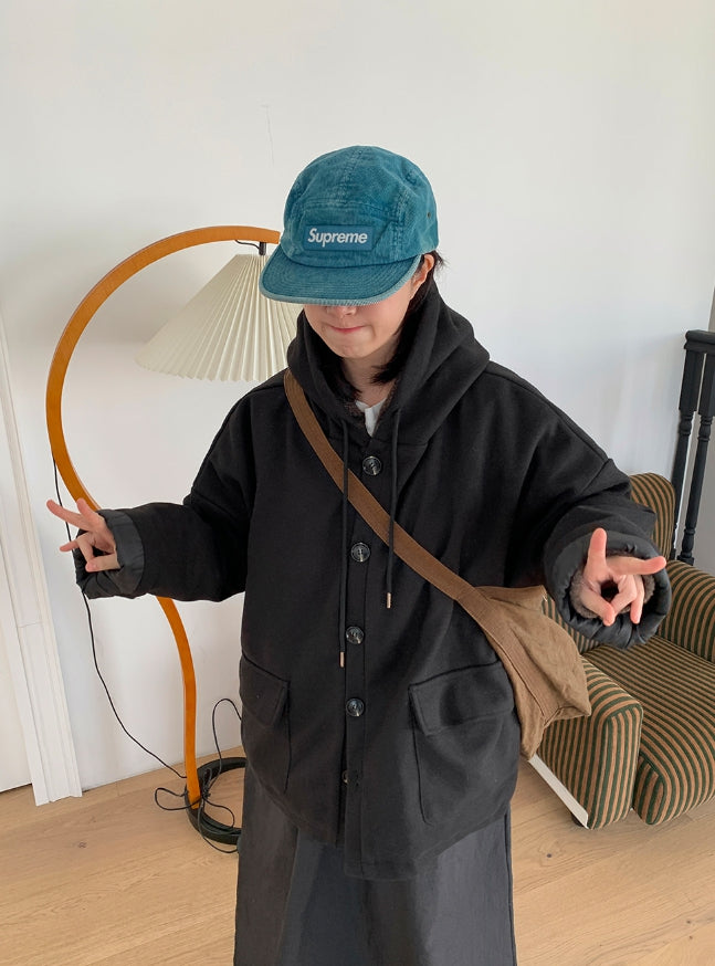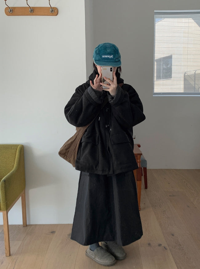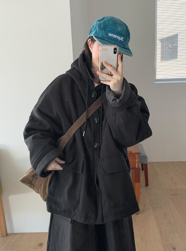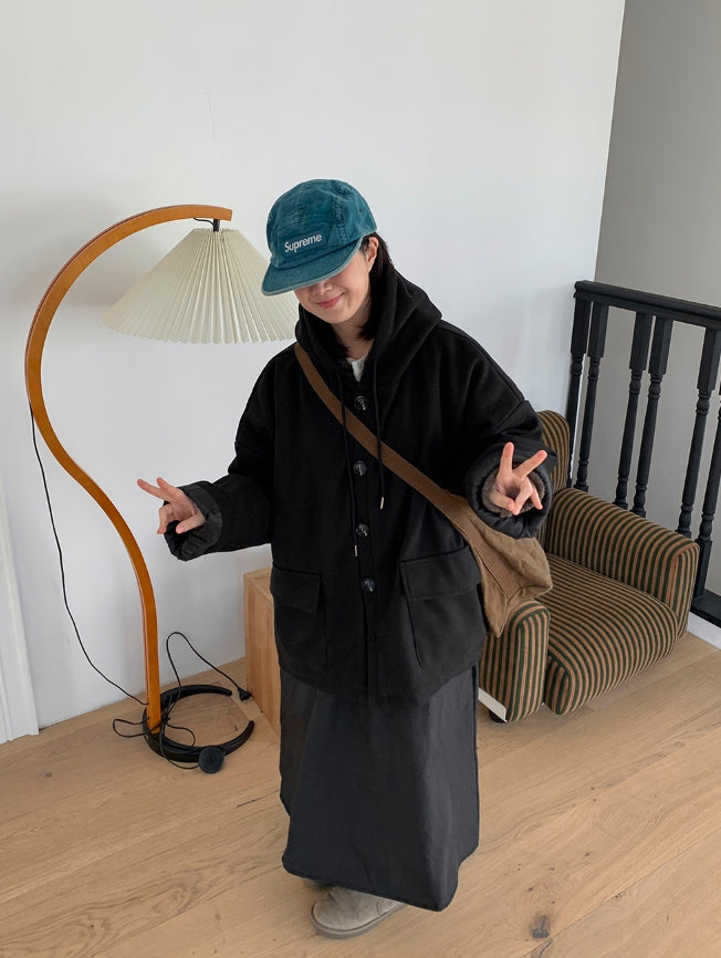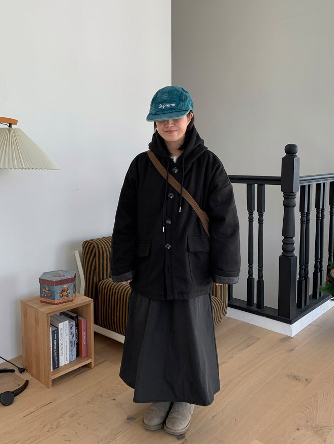 エンコーニウールキルティングフードハーフコート