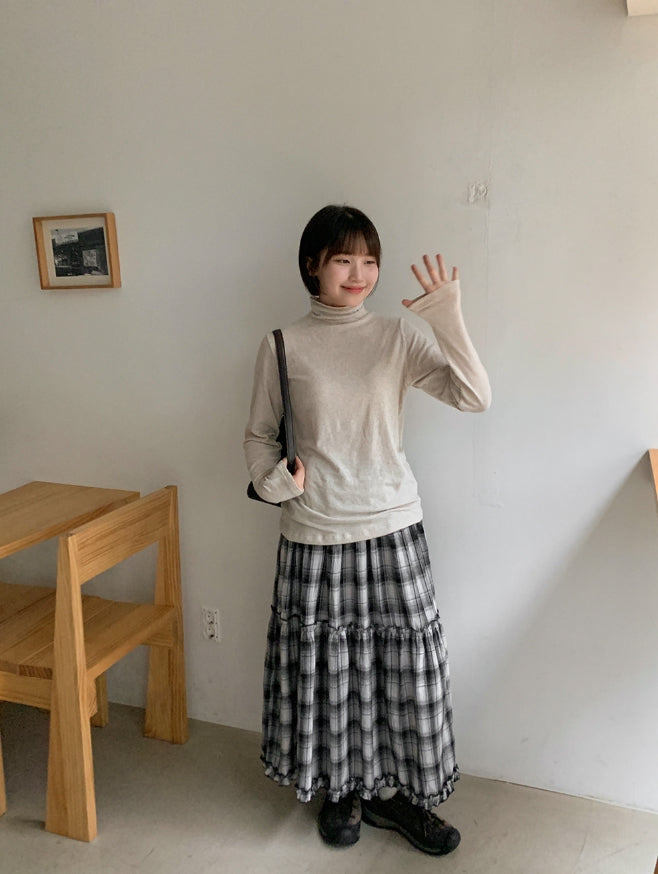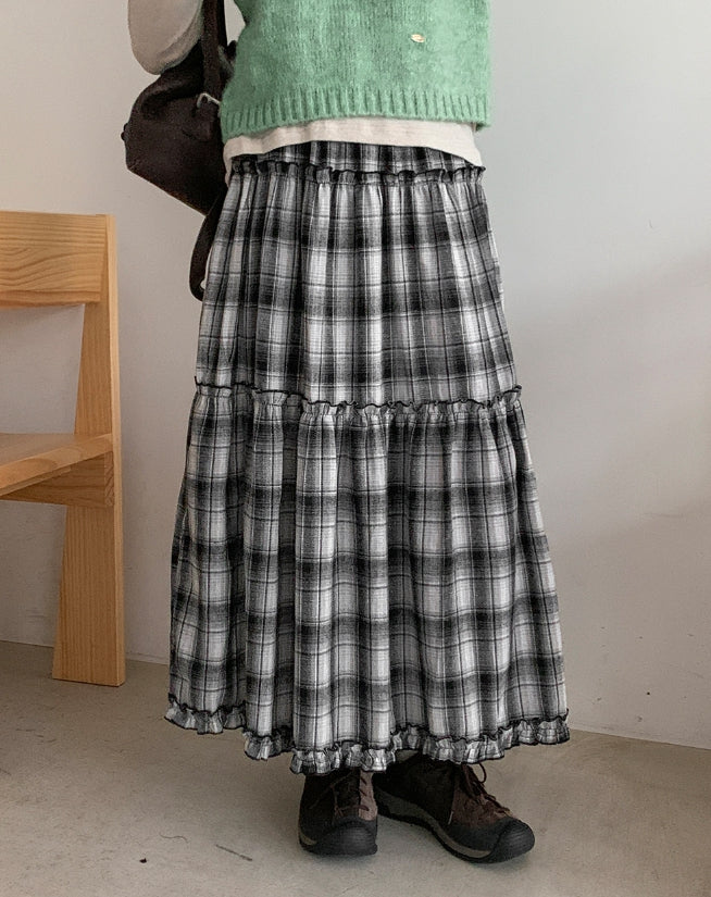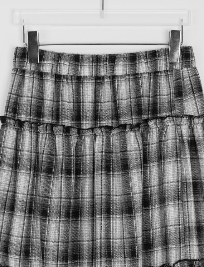 Tonbo Banding Check Frill Tiered Long Skirt
