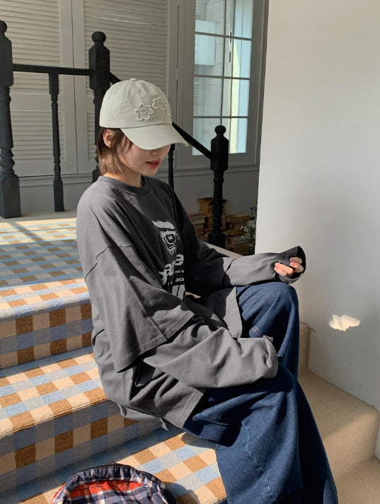 トーニンプリンティングレイヤードオーバー長袖Tシャツ